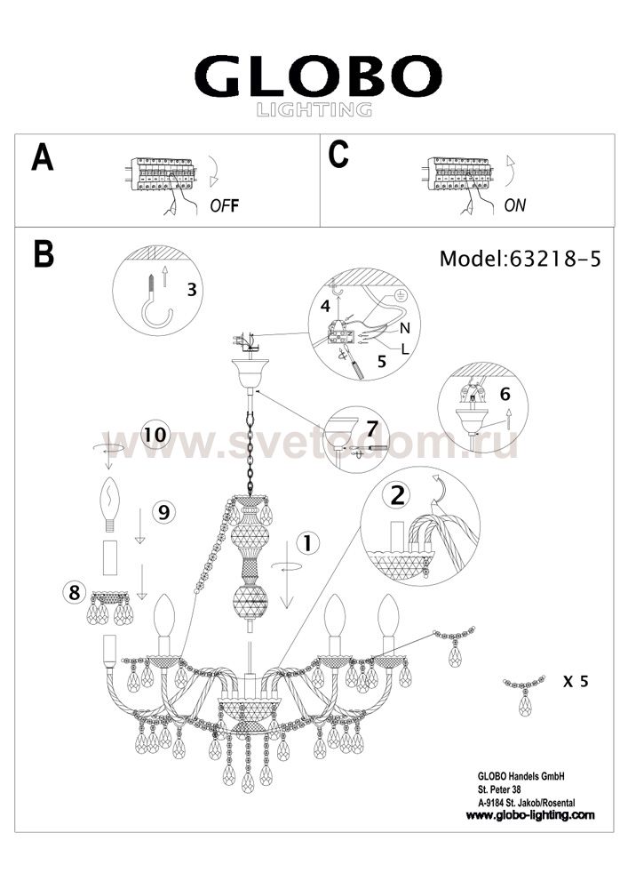 Компания «Светодом» предлагает широкий ассортимент люстр от известных производителей. Представленные в нашем каталоге товары выполнены из современных материалов и обладают отличным качеством. Благодаря широкому ассортименту Вы сможете найти у нас люстру под любой интерьер. Мы предлагаем как классические варианты, так и современные модели, отличающиеся лаконичностью и простотой форм. Стильная люстра Globo 63218-5 станет украшением любого дома. Эта модель от известного производителя не оставит равнодушным ценителей красивых и оригинальных предметов интерьера. Люстра Globo 63218-5 обеспечит равномерное распределение света по всей комнате. При выборе обратите внимание на характеристики, позволяющие приобрести наиболее подходящую модель. Купить понравившуюся люстру по доступной цене Вы можете в интернет-магазине «Светодом».