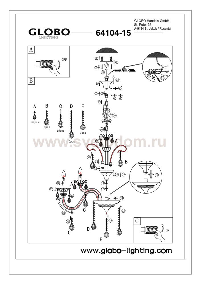 Компания «Светодом» предлагает широкий ассортимент люстр от известных производителей. Представленные в нашем каталоге товары выполнены из современных материалов и обладают отличным качеством. Благодаря широкому ассортименту Вы сможете найти у нас люстру под любой интерьер. Мы предлагаем как классические варианты, так и современные модели, отличающиеся лаконичностью и простотой форм. Стильная люстра Globo 64104-15 станет украшением любого дома. Эта модель от известного производителя не оставит равнодушным ценителей красивых и оригинальных предметов интерьера. Люстра Globo 64104-15 обеспечит равномерное распределение света по всей комнате. При выборе обратите внимание на характеристики, позволяющие приобрести наиболее подходящую модель. Купить понравившуюся люстру по доступной цене Вы можете в интернет-магазине «Светодом».