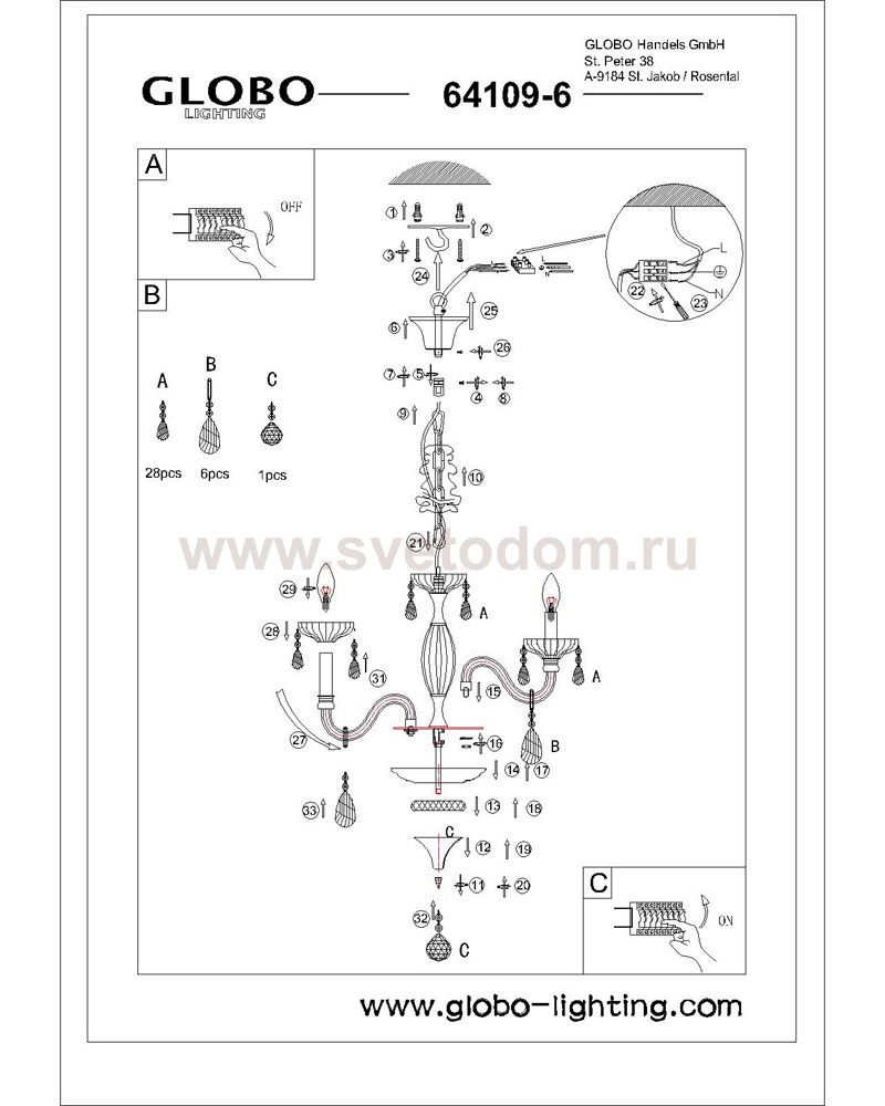Компания «Светодом» предлагает широкий ассортимент люстр от известных производителей. Представленные в нашем каталоге товары выполнены из современных материалов и обладают отличным качеством. Благодаря широкому ассортименту Вы сможете найти у нас люстру под любой интерьер. Мы предлагаем как классические варианты, так и современные модели, отличающиеся лаконичностью и простотой форм. Стильная люстра Globo 64109-6 станет украшением любого дома. Эта модель от известного производителя не оставит равнодушным ценителей красивых и оригинальных предметов интерьера. Люстра Globo 64109-6 обеспечит равномерное распределение света по всей комнате. При выборе обратите внимание на характеристики, позволяющие приобрести наиболее подходящую модель. Купить понравившуюся люстру по доступной цене Вы можете в интернет-магазине «Светодом».