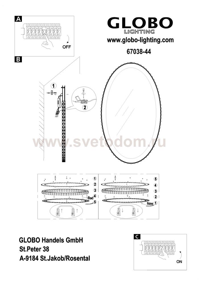 Светильник настенный с зеркалом Артикул производителя