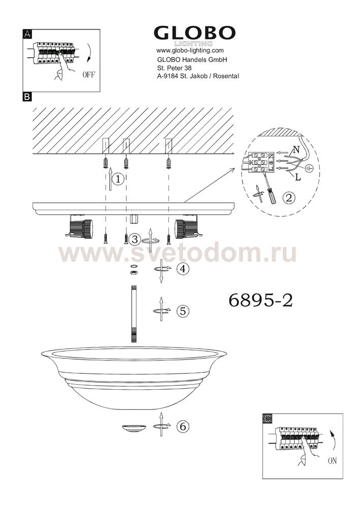 Настенно потолочный светильник Globo (Глобо) 6895-2 подходит как для установки в вертикальном положении - на стены, так и для установки в горизонтальном - на потолок. Для установки настенно потолочных светильников на натяжной потолок необходимо использовать светодиодные лампы LED, которые экономнее ламп Ильича (накаливания) в 10 раз, выделяют мало тепла и не дадут расплавиться Вашему потолку.