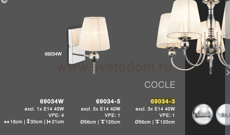 Люстра потолочная Globo 69034-3 COCLE сделает Ваш интерьер современным, стильным и запоминающимся! Наиболее функционально и эстетически привлекательно модель будет смотреться в гостиной, зале, холле или другой комнате. А в комплекте с настенными бра и торшером из этой же коллекции, сделает интерьер по-дизайнерски профессиональным и законченным.