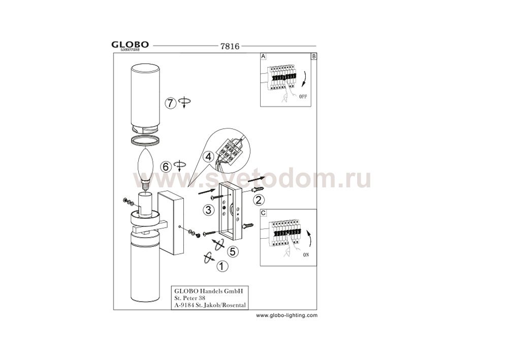 Настенно потолочный светильник Globo (Глобо) 7816 подходит как для установки в вертикальном положении - на стены, так и для установки в горизонтальном - на потолок. Для установки настенно потолочных светильников на натяжной потолок необходимо использовать светодиодные лампы LED, которые экономнее ламп Ильича (накаливания) в 10 раз, выделяют мало тепла и не дадут расплавиться Вашему потолку.