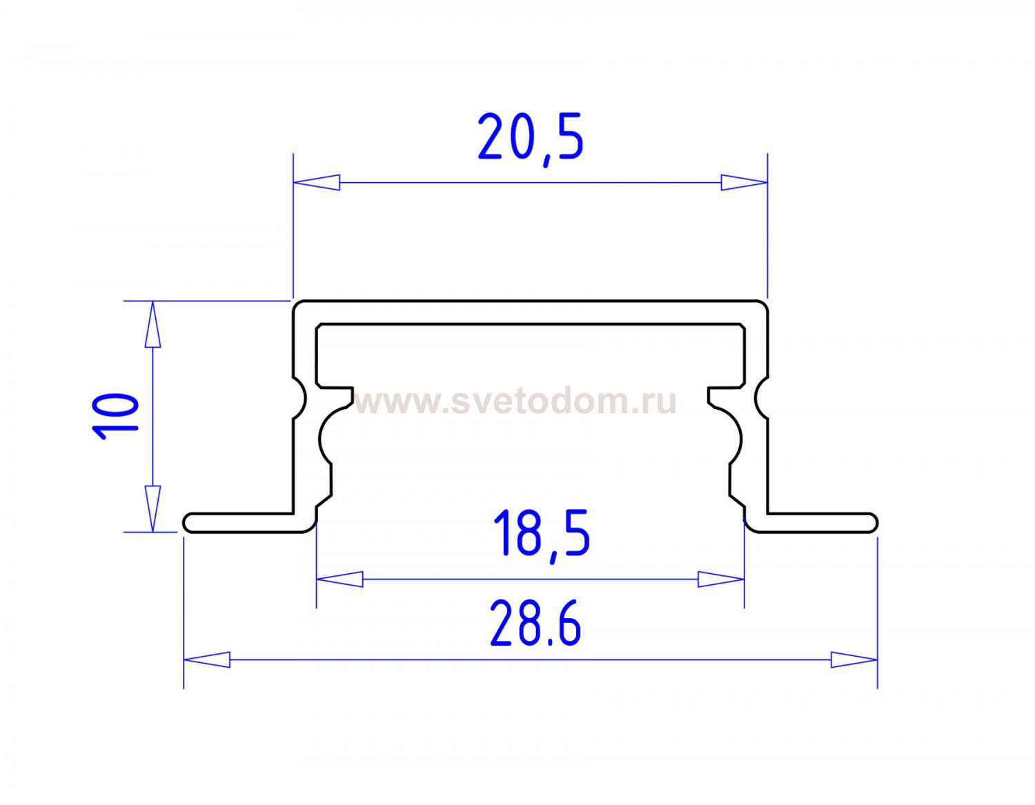 Алюминиевый профиль встраиваемый 28.6*10 для светодиодной ленты до 18,5мм Артикул производителя