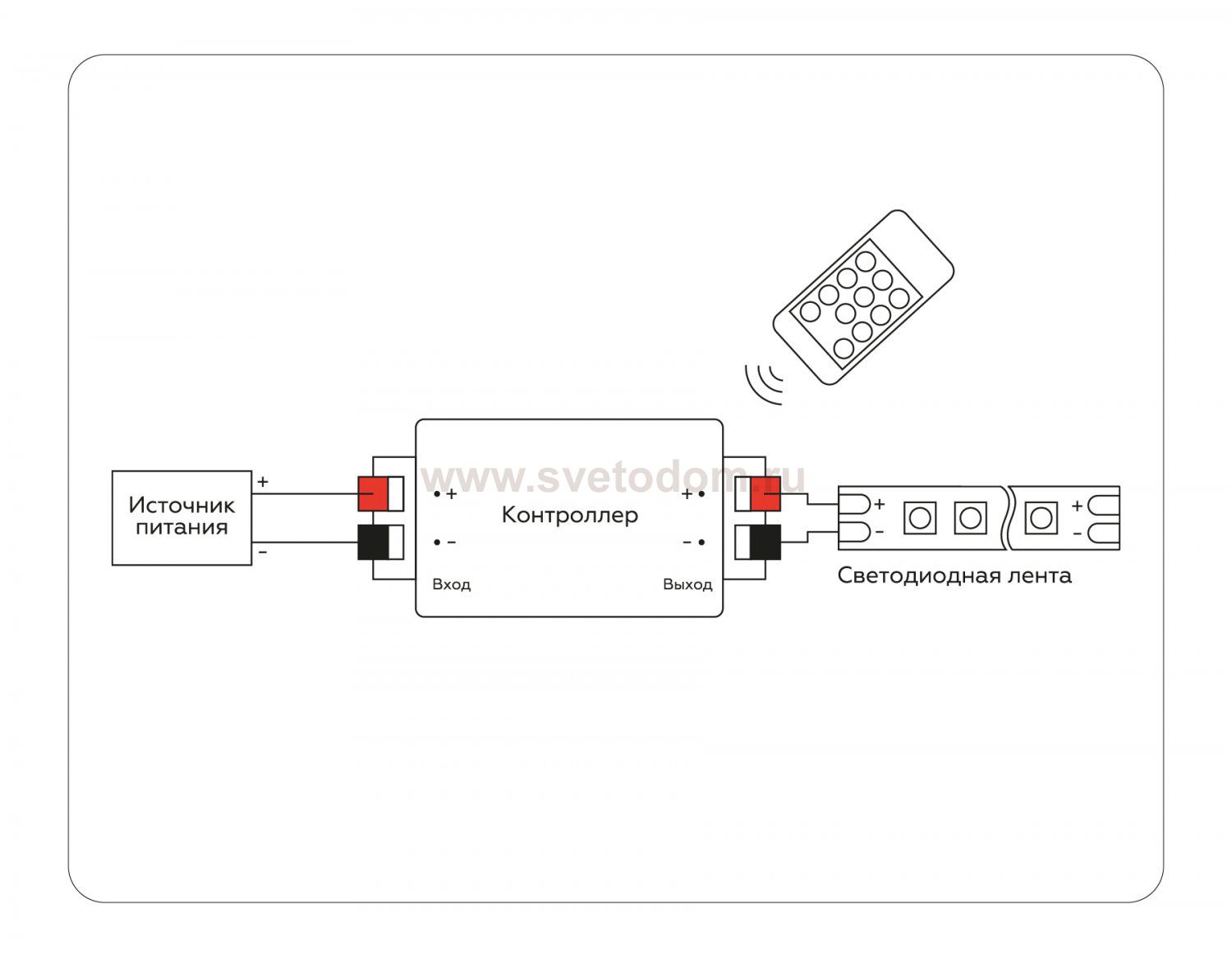 Контроллер диммер для одноцветных светодиодных лент с радио пультом 2.4G 8A 12V 96W/24V 192W GS11001 Артикул производителя