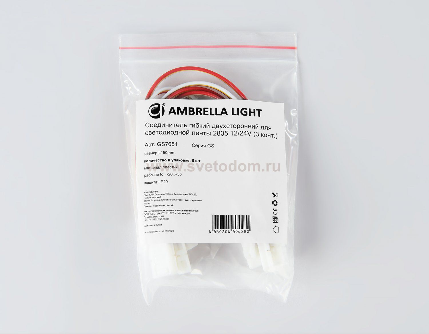 Соединитель гибкий двухсторонний для светодиодной ленты 2835 12/24V (3 конт.) 150 мм GS7651 (5шт) Артикул производителя