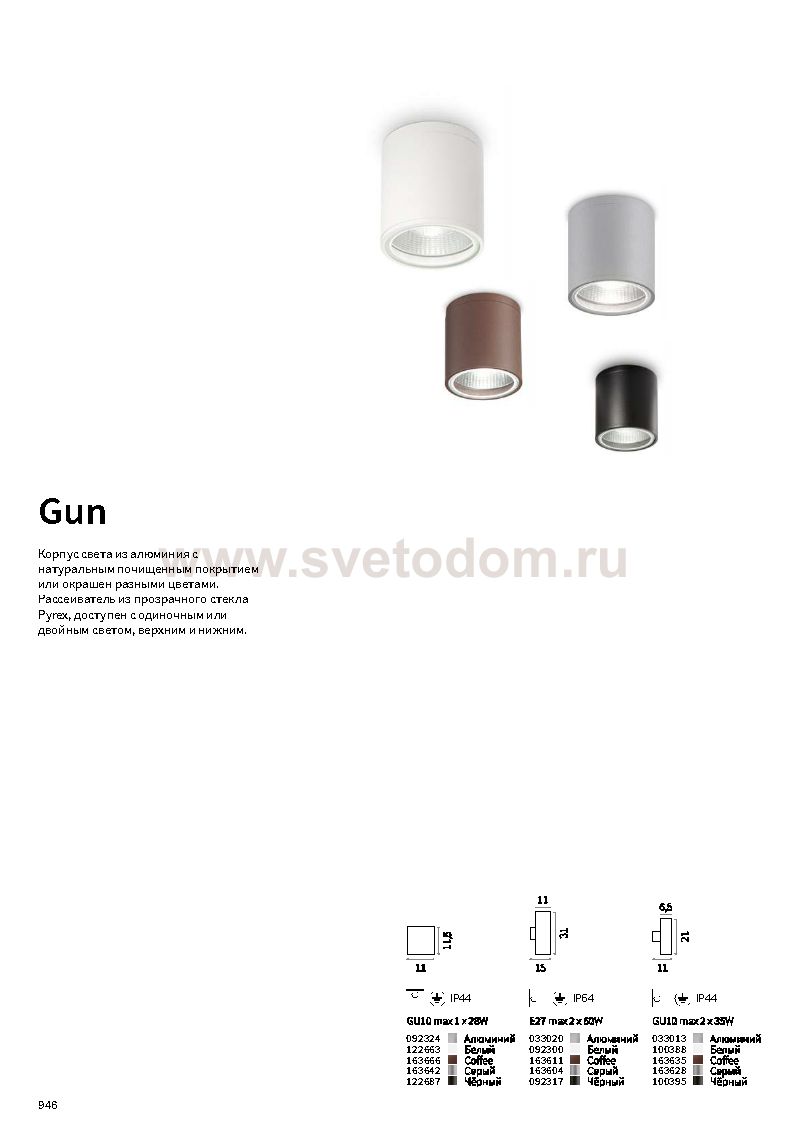 Корпус света из алюминия с натуральным сатиновым покрытием или окрашен разными цветами. Рассеиватель из прозрачного стекла pyrex, доступен с одинарным или двойным светом, верхним и нижним.