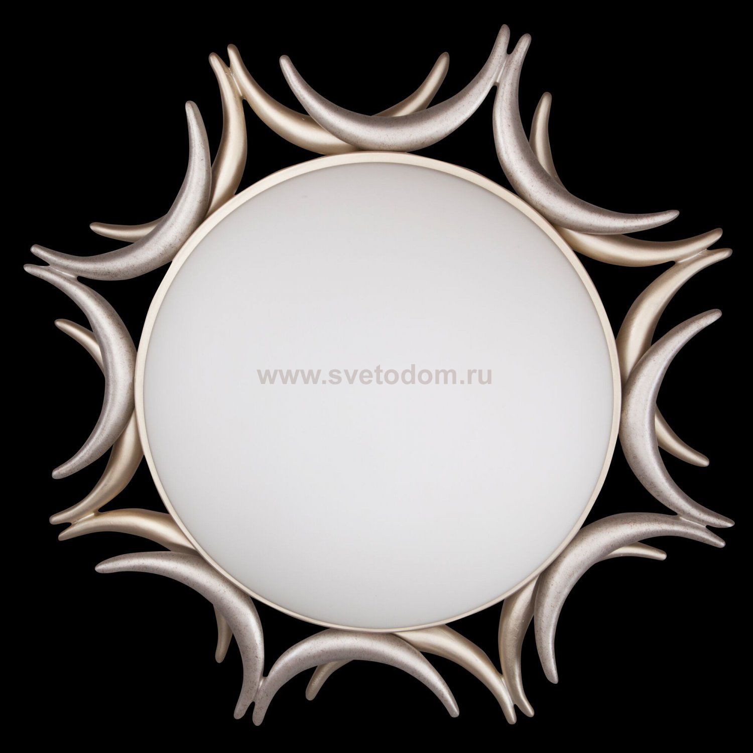 Особенности модели H013CL-03G: Полумесяцы из полирезина замыкаются в неразрывной круговой композиции, опоясывая металлические корпуса светильников. Выкрашенные в золотистый цвет, они придают светильникам визуальный объем и добавляют декоративность. Стеклянные матовые плафоны потолочных светильников и абажуры из ткани на ПВХ мягко рассеивают свет.