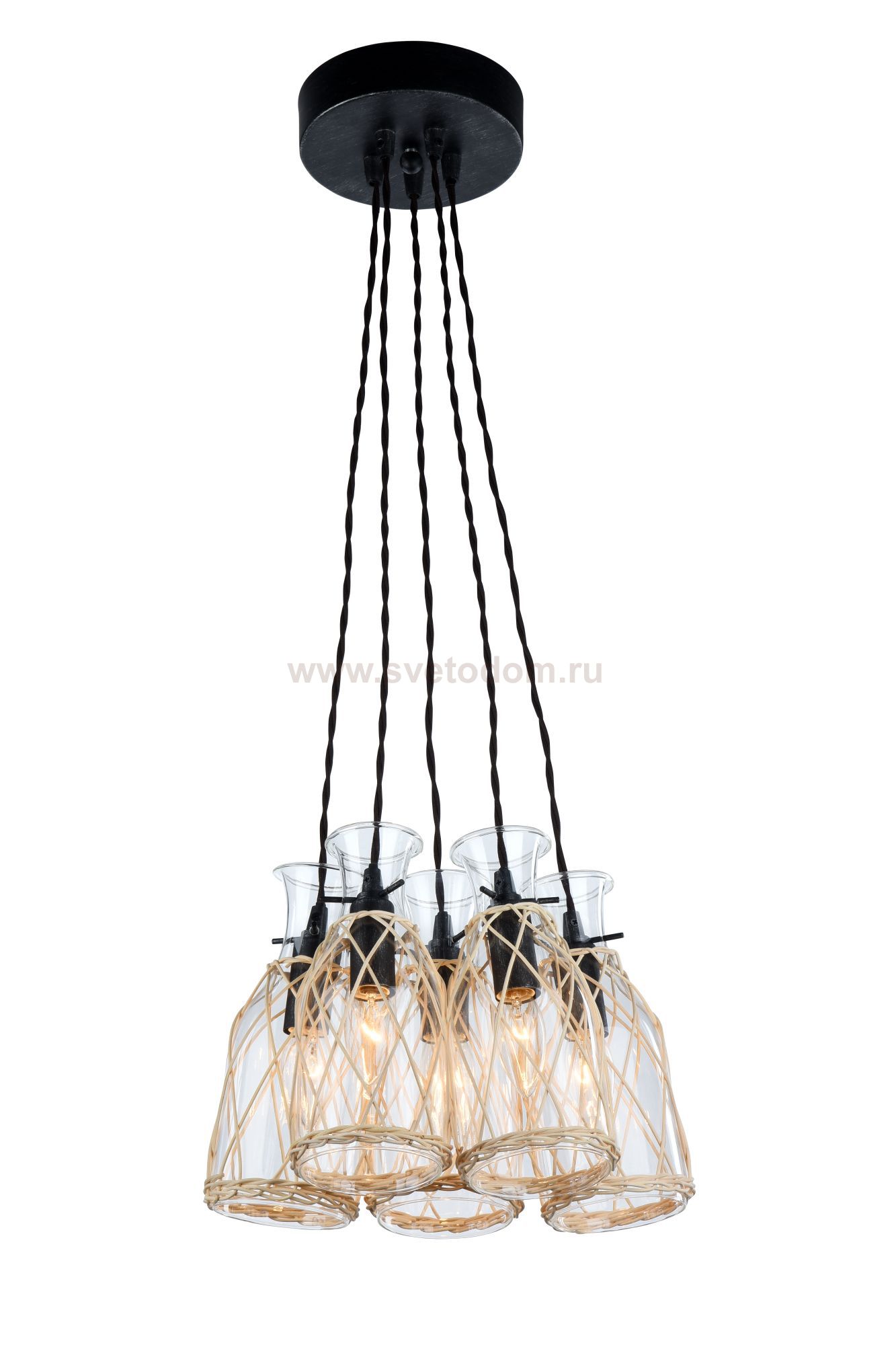Каркас из металла. Плафон выполнен из стекла и ротанга. Комментарий