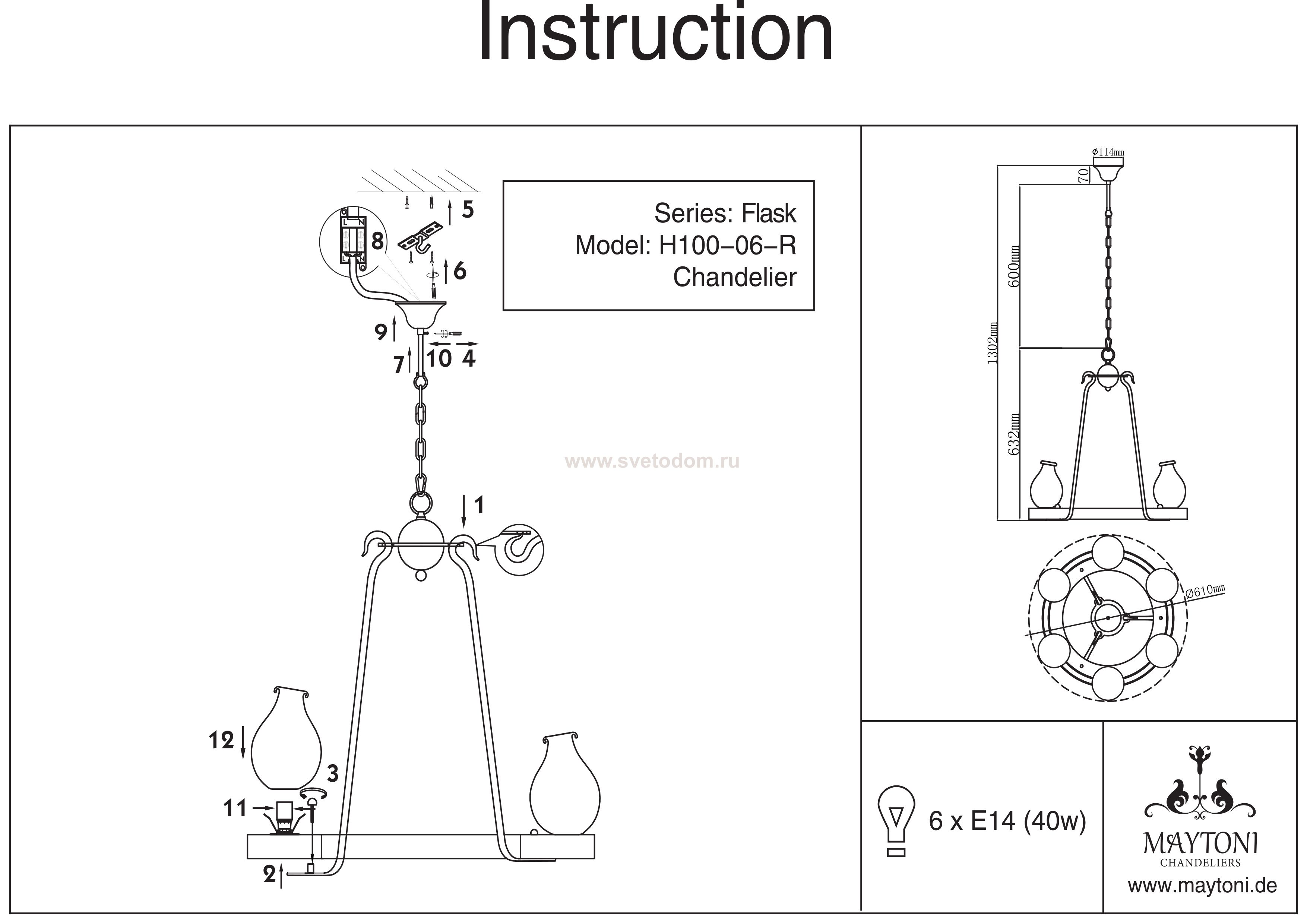 100 Отзывы Люстра Maytoni H100-06-R House FlaskПока нет отзывов об этом товаре, напишите и он обязательно появится после модерации! Оставить свой отзывПохожие товары Другие товары магазина Фото