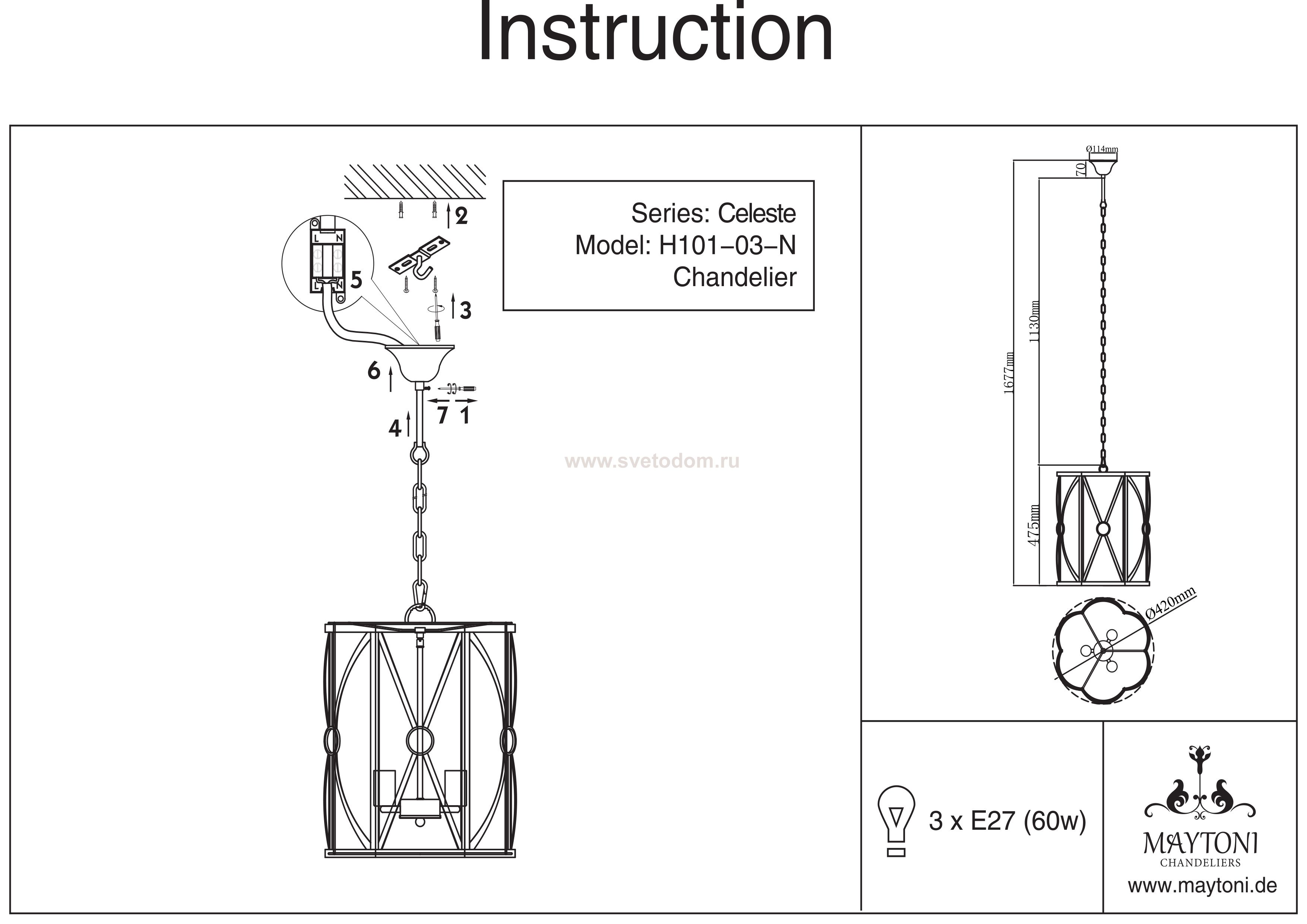 Люстра Maytoni H101-03-N House Celeste на протяжении многих лет притягивает к себе искушенных дизайнеров и клиентов, обустраивающих квартиру или загородный дом, а также офисные или общественные места. Благодаря эстетической тонкости и технической проработанности германская модель h101-03-n популярна в онлайн продажах на сайте и в наших "земных" магазинах сети Светодом.