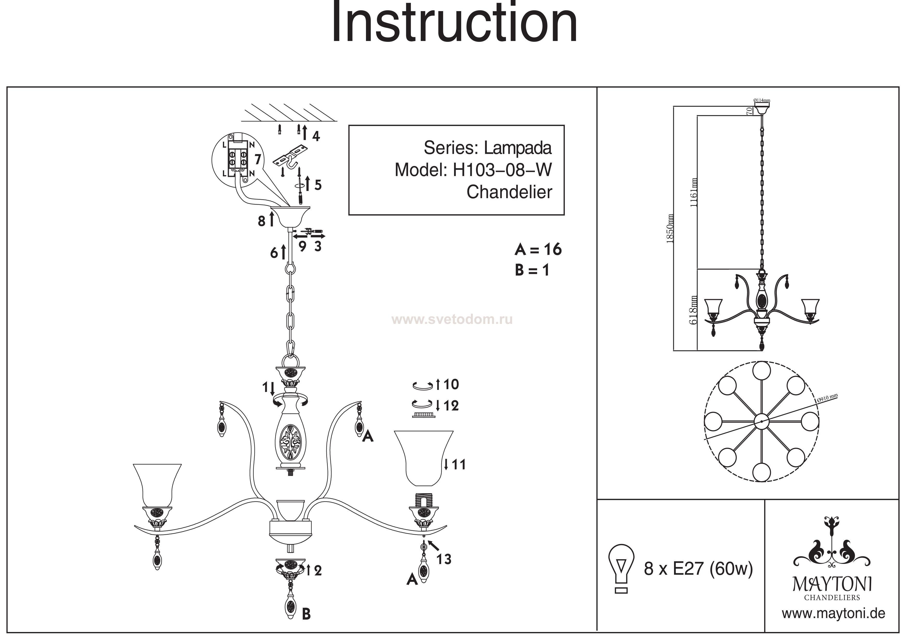 Практически для каждой люстры производитель указывает максимальную мощность лампочки. Это связано с тем, что при работе лампы выделяется значительное количество тепла. Если установить лампу большей мощности, то это может привести к деформации и порче люстры, разрушению патрона.
