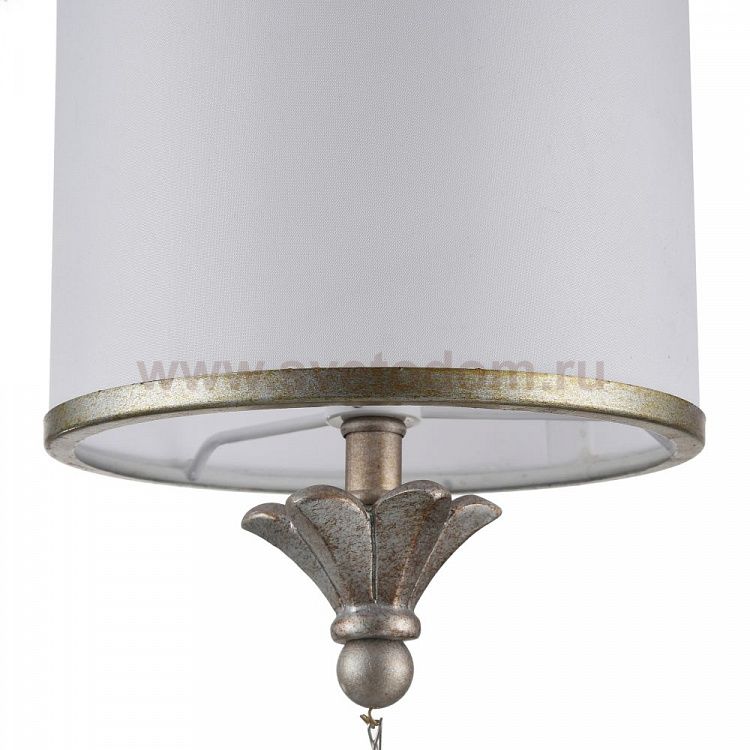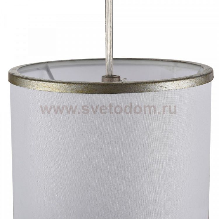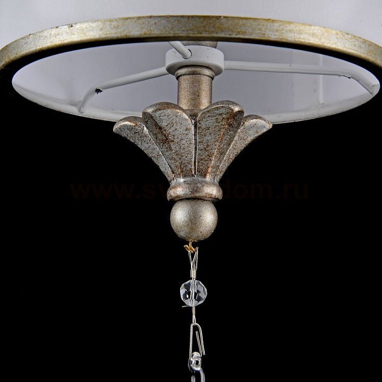 Круглый каркас из металла. Абажур из ПВХ покрыт белой тканью. Подвески из *хрусталя. Дополнительно