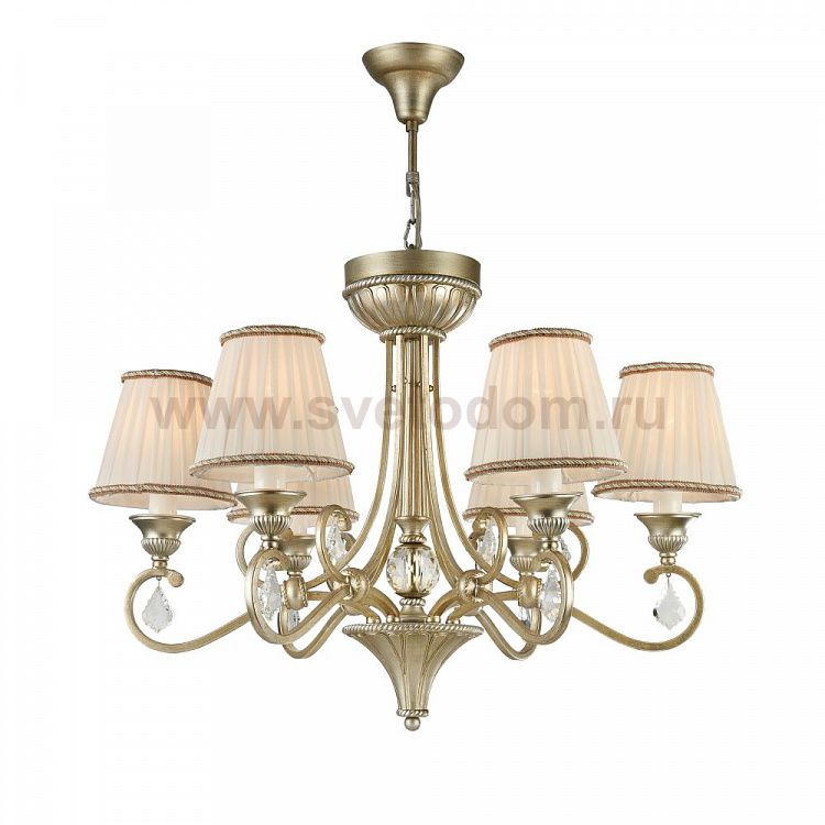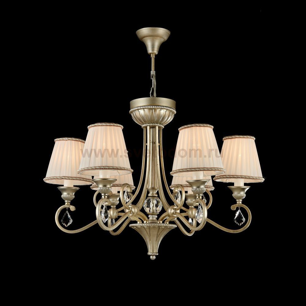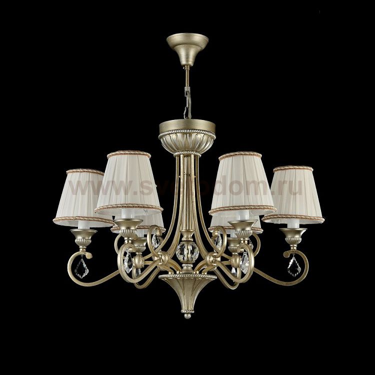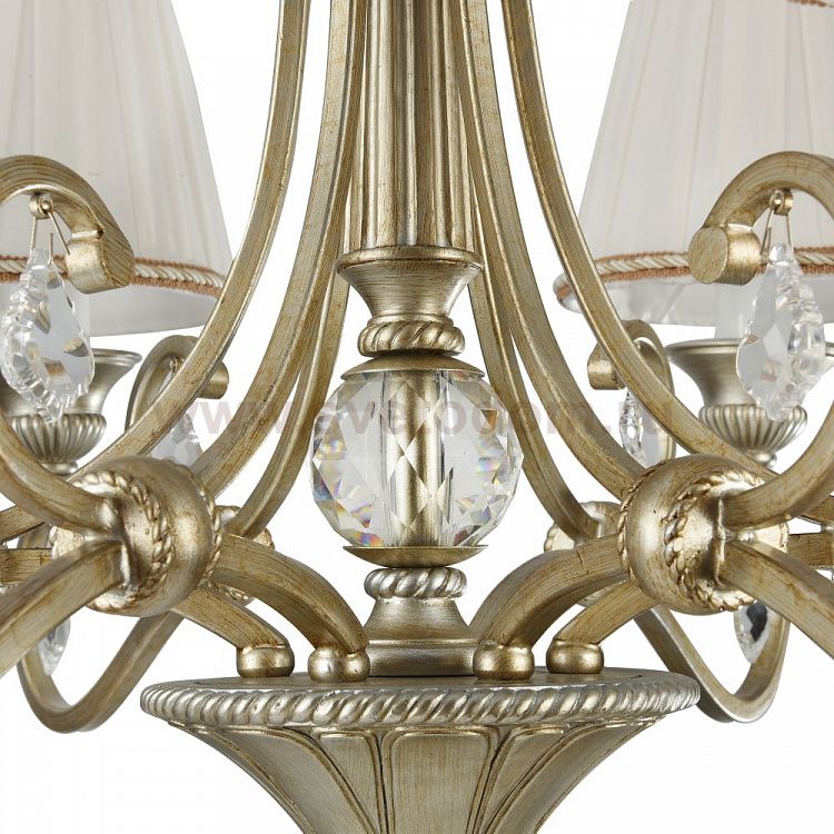 Арматура из металла. Множество декоративных элементов. Абажур из атласа обрамлен тесьмой. Подвески из *хрусталя. Дополнительно