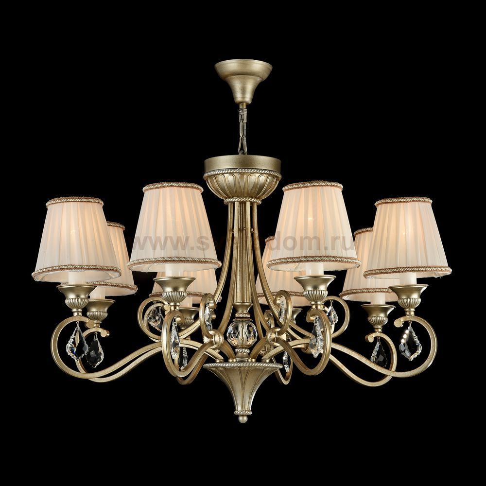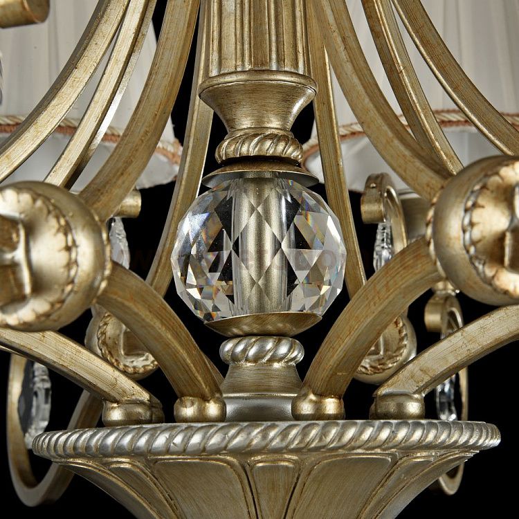 Арматура из металла. Множество декоративных элементов. Абажур из атласа обрамлен тесьмой. Подвески из *хрусталя. Дополнительно