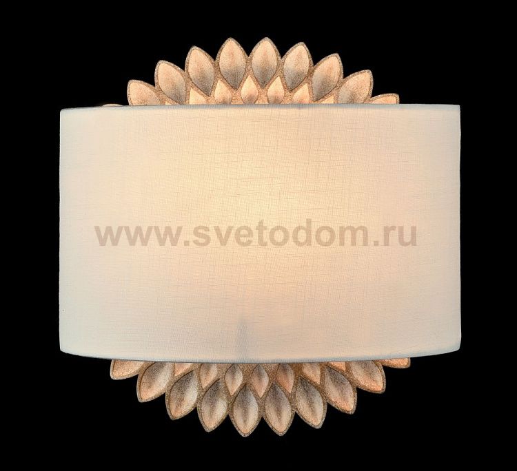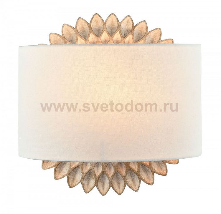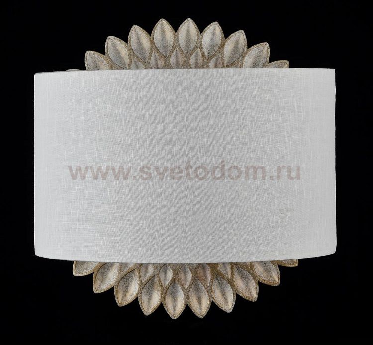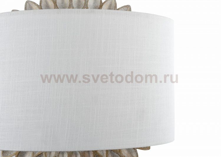 Арматура из металла, цвет – кремовый с золотом. Абажур – белый хлопок на ПВХ. Флористический декор.