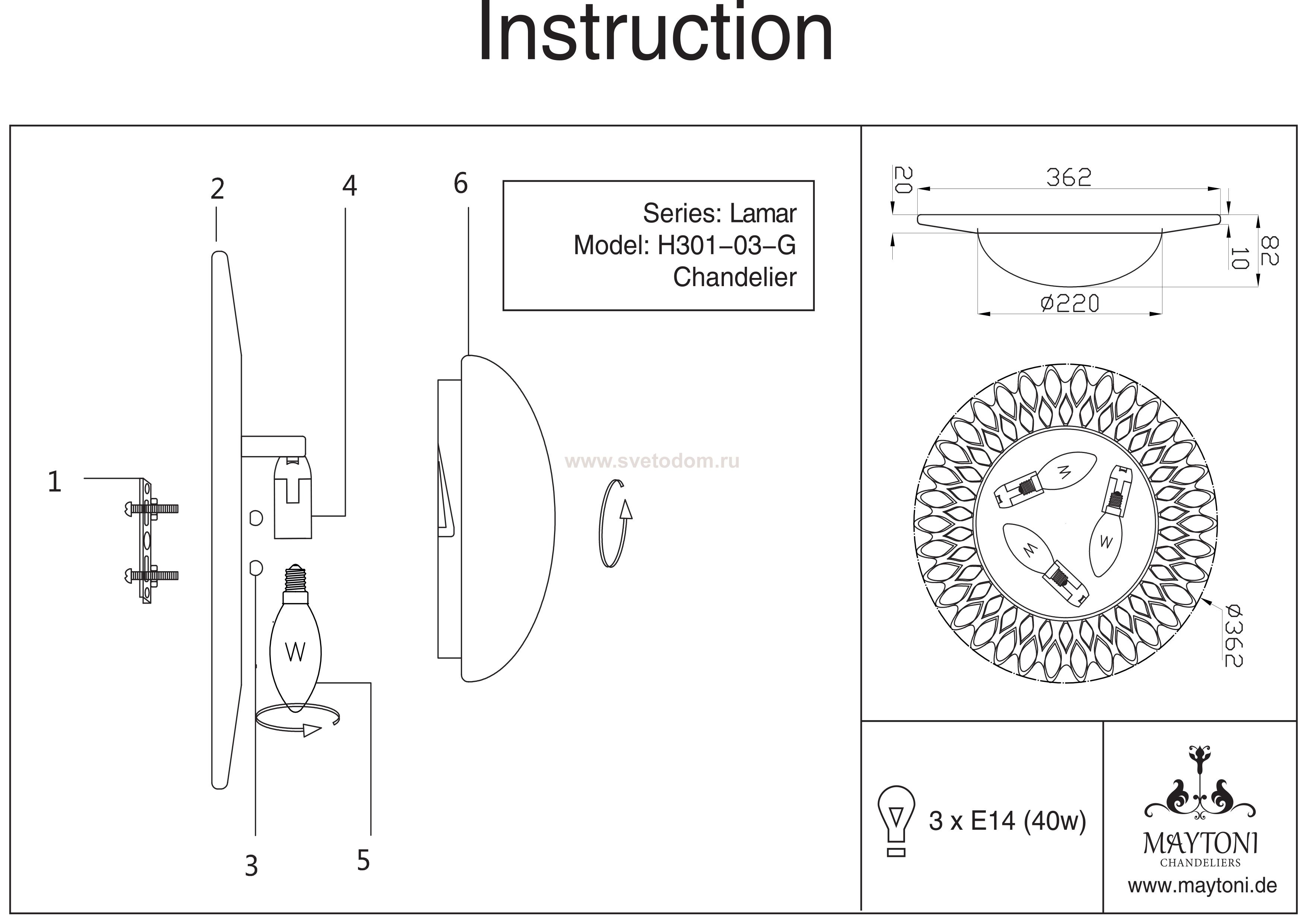 Максимальная потребляемая мощность лампы, которую можно использовать в люстре.
