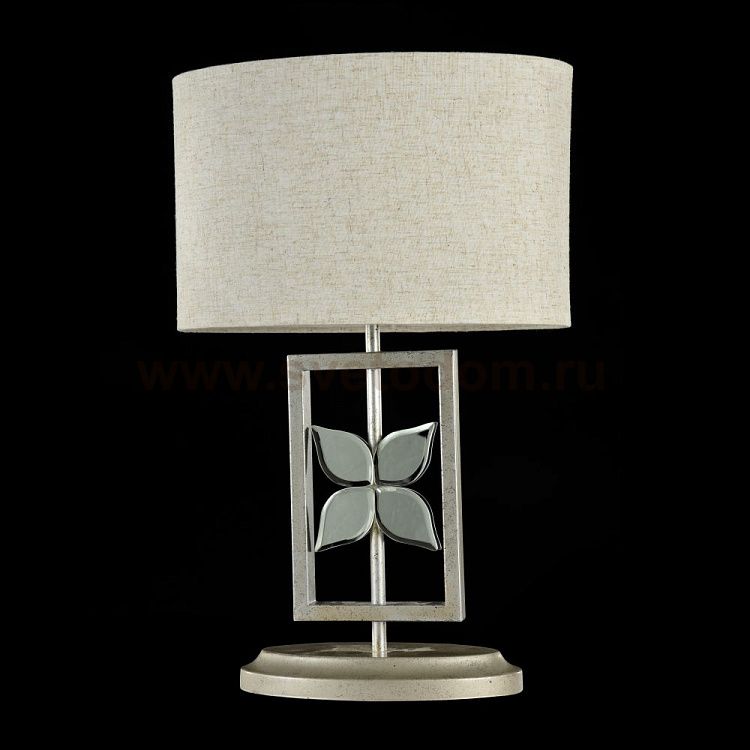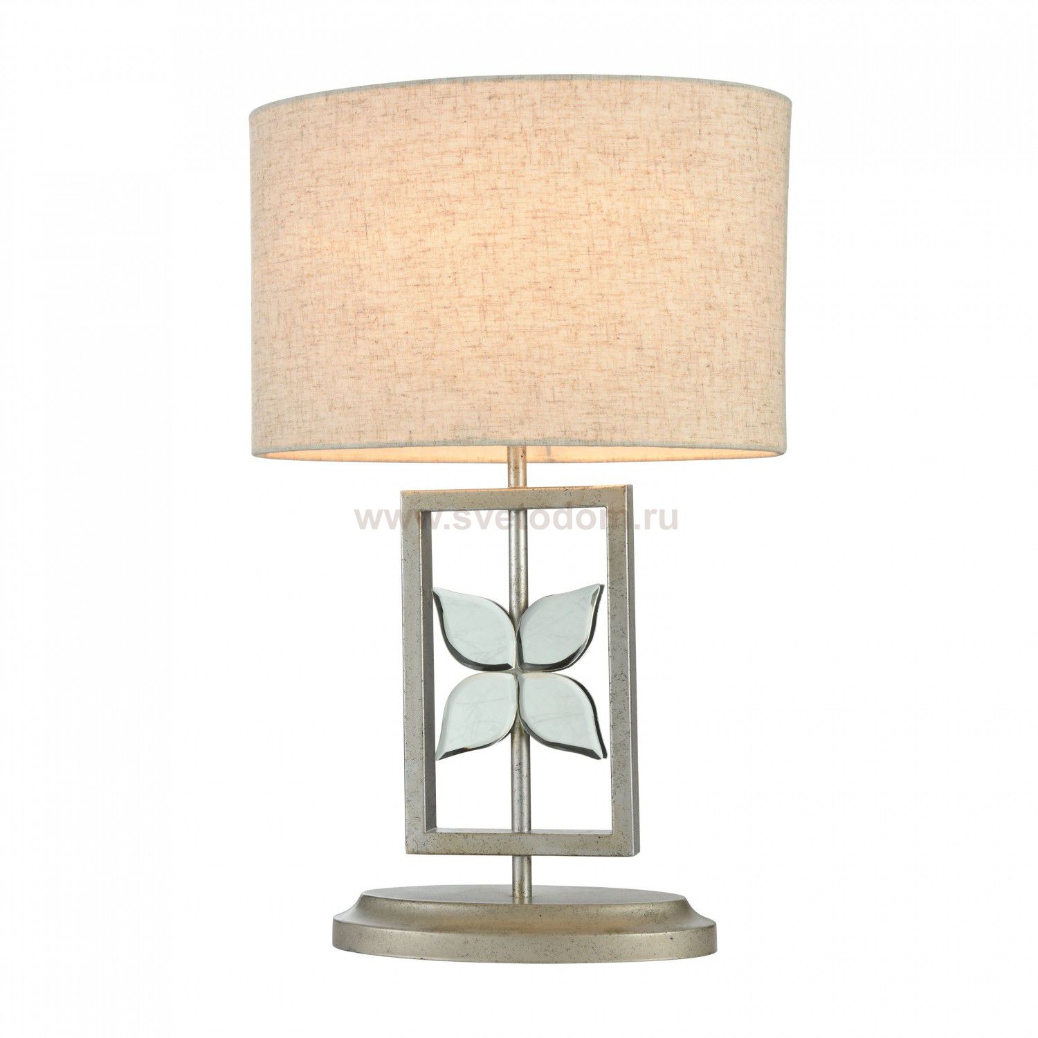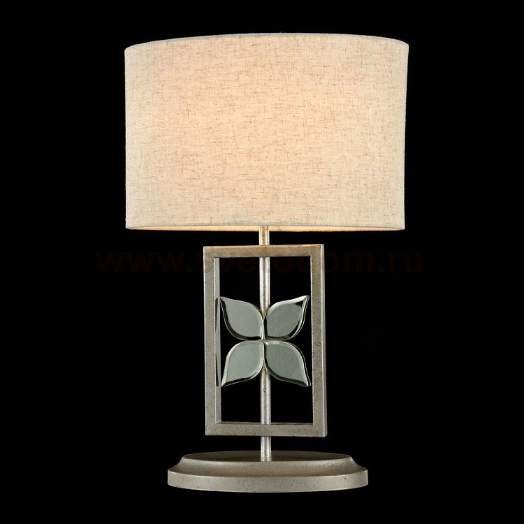 Особенности модели H351-TL-01-N: Арматура из металла. Декоративный элемент в виде цветка из матового стекла. Абажур из ПВХ покрыт тканью.