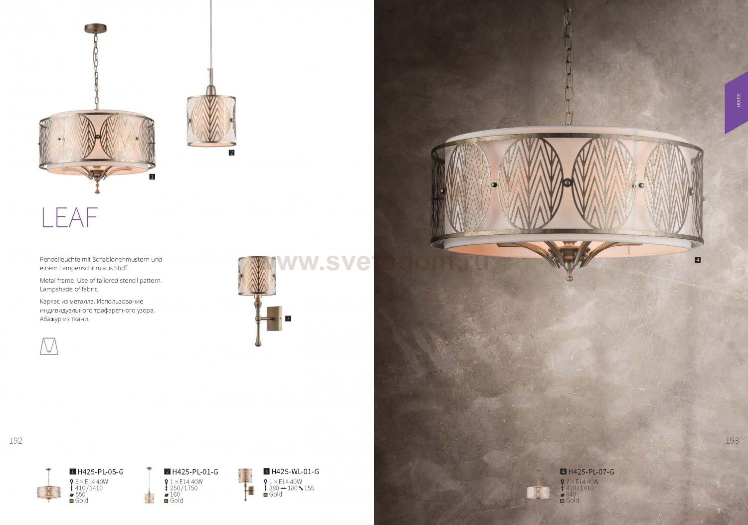 Особенности модели H425-PL-01-G: Колористическое решение серии строится на контрасте темных элементов со светлой тканью абажуров. Благодаря чему хорошо просматривается орнамент из простых зигзагообразных линий, окружающий абажуры светильников. Светильники серии представлены в цвете "античное золото". Высоту подвесных светильников возможно изменять, регулируя длину цепи.