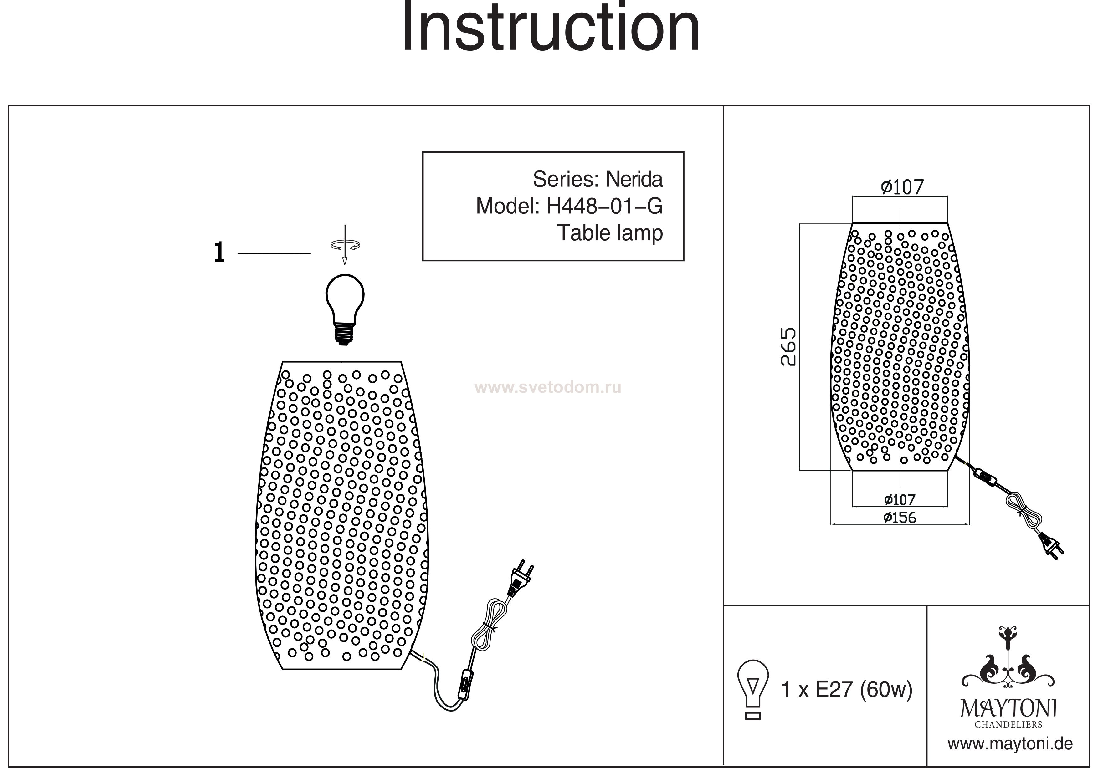 Настольная лампа – это не просто источник дополнительного освещения, но и оригинальный элемент декора. Его можно установить в спальне, гостиной, кабинете и других комнатах. Интернет-магазин «Светодом» предлагает настольные лампы разных стилей по доступным ценам. Благодаря большому ассортименту Вы обязательно найдете в нашем каталоге именно ту модель, которую искали. Настольная лампа Maytoni H448-01-G – прекрасный вариант для завершения интерьера. Ее можно включить одновременно с люстрой для более яркого освещения или без нее для создания уютной атмосферы, настраивающей на отдых. Купить настольную лампу Maytoni H448-01-G Вы можете с помощью виртуальной «Корзины» или по контактным номерам, указанным на сайте. |