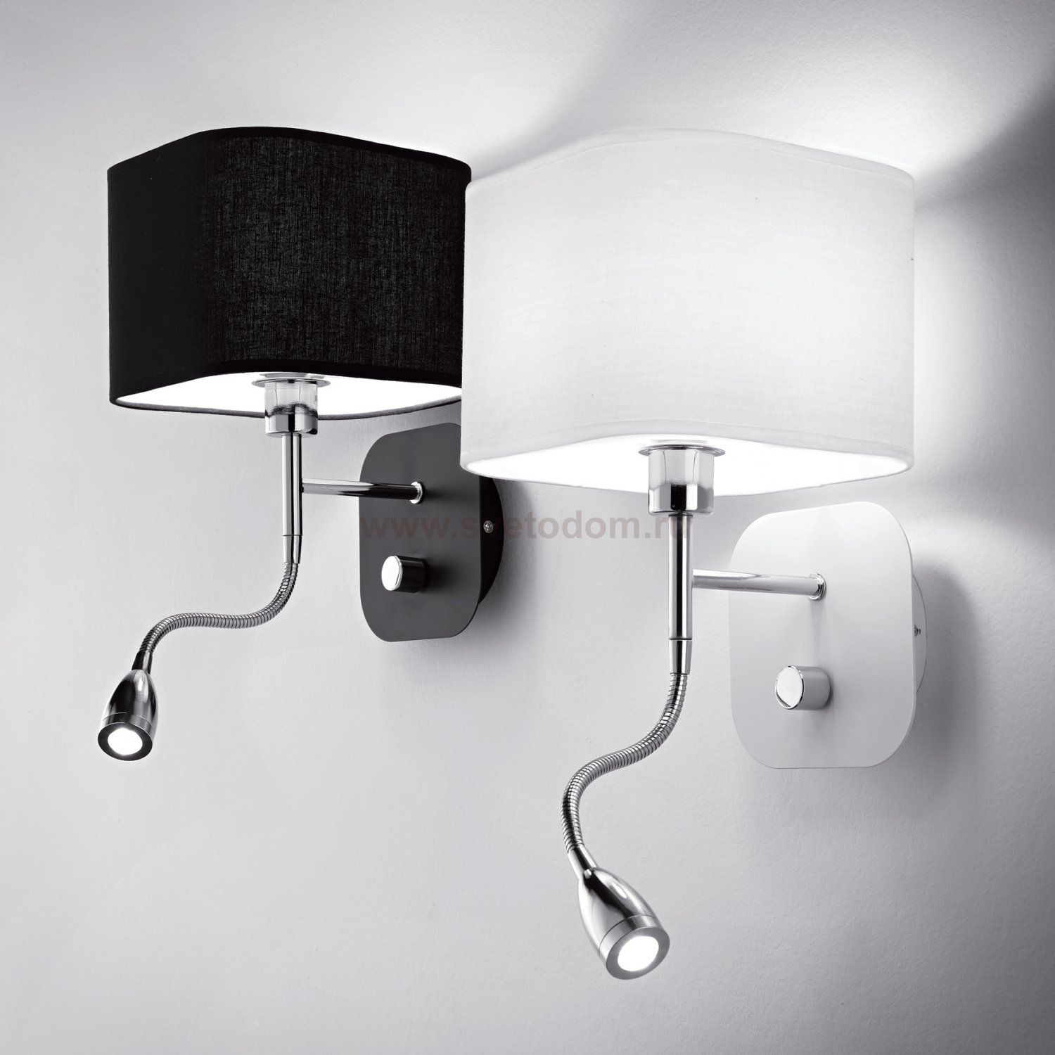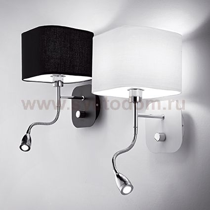 Арматура из металла с матовой основой и структурой в хроме. Абажур из материала ПВХ покрыт тканью. Один выключатель контролирует два света.