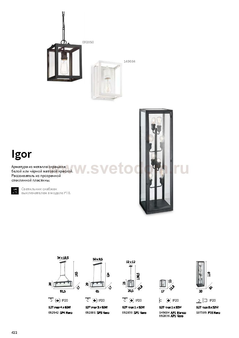 422 Отзывы Торшер Ideal lux IGOR PT8 NERO (187389)Пока нет отзывов об этом товаре, напишите и он обязательно появится после модерации! Оставить свой отзывПохожие товары Другие товары магазина Фото