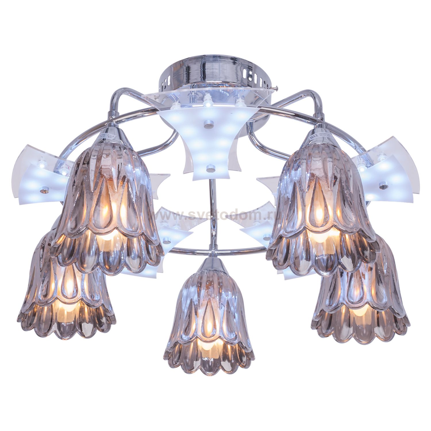 Потолочный светильник 11932N/5CR CR LED от бренда ЭкономСвет. Каркас выполнен из материала металл, цвет хром. Плафоны (светорассеиватели) выполнены из материала стекло, цвет тонированный. Цоколь E14 рассчитан на лампы максимальной мощности до 60 Вт, а максимальная площадь освещения составит до 11 м?. Светодиодная подсветка позволит создать в интерьере разнообразное световое настроение.
