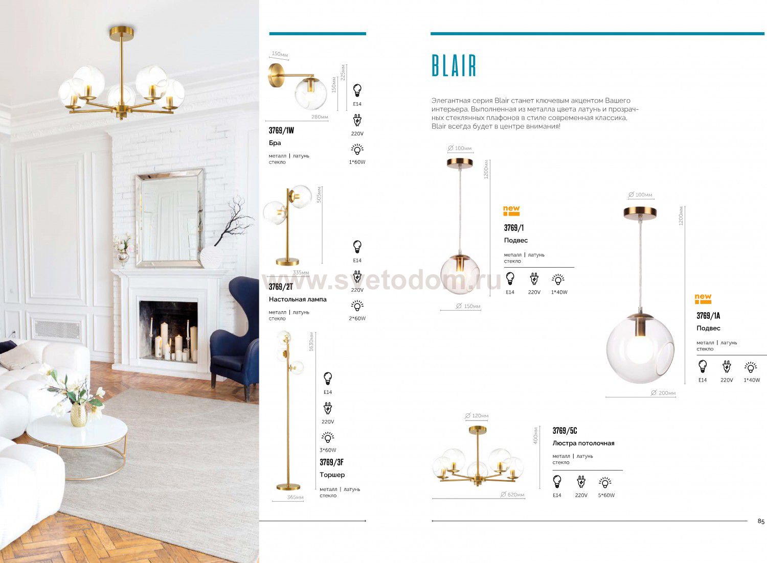 Элегантная линия Blair станет ключевым акцентом вашего интерьера. Выполненная из металла цвета латунь и прозрачных стеклянных плафонов в стиле современная классика, Blair всегда будет в центре внимания!