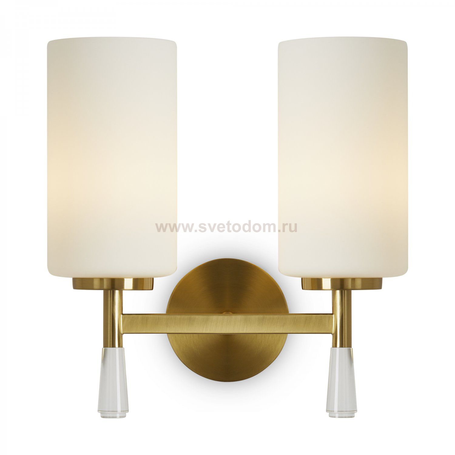 Арматура металл. Цвет латунь. Стеклянные белые плафоны хорошо рассеивают свет, направлены вверх, тем самым вытягивают потолок. Декоративные элементы в виде хрустального основания и капель из акрила. Источник света — лампа. Цоколь E27.