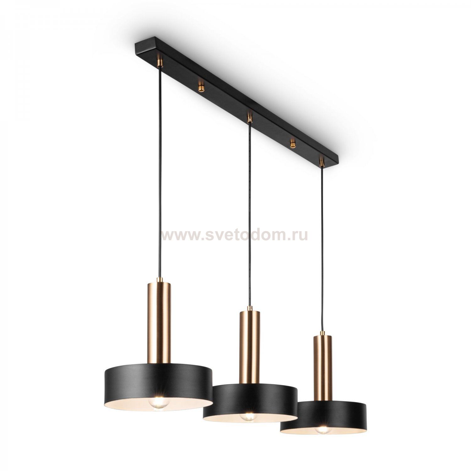 Арматура и плафоны из металла. Цвет арматуры – черный и латунь. Плафоны окрашены в черный оттенок. Актуальный лофтовый дизайн. Источник света – лампа с цоколем E27.