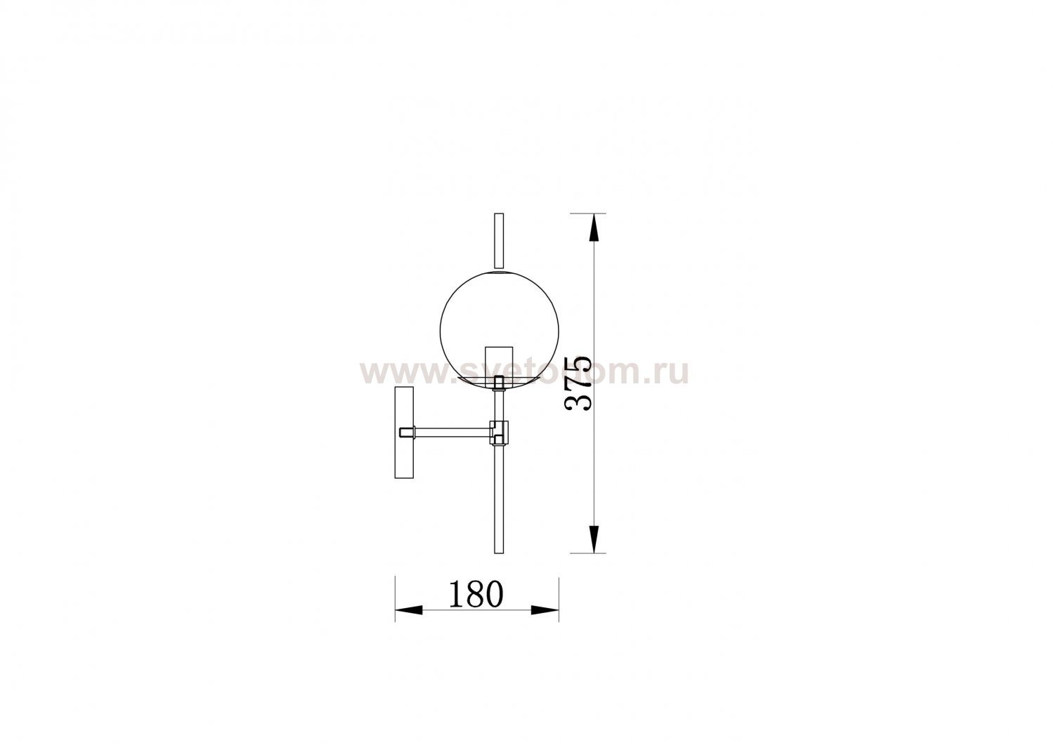 Арматура из металла. Цвет – латунь. Плафоны – матовое белое стекло. Трендовая геометрия в дизайне: арматура «пронизывает» плафоны-сферы. Источник света – лампа с цоколем Е27.