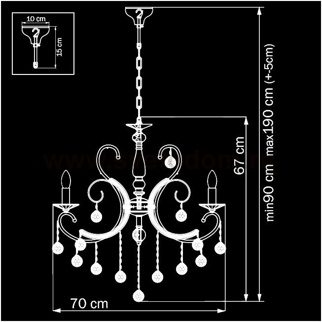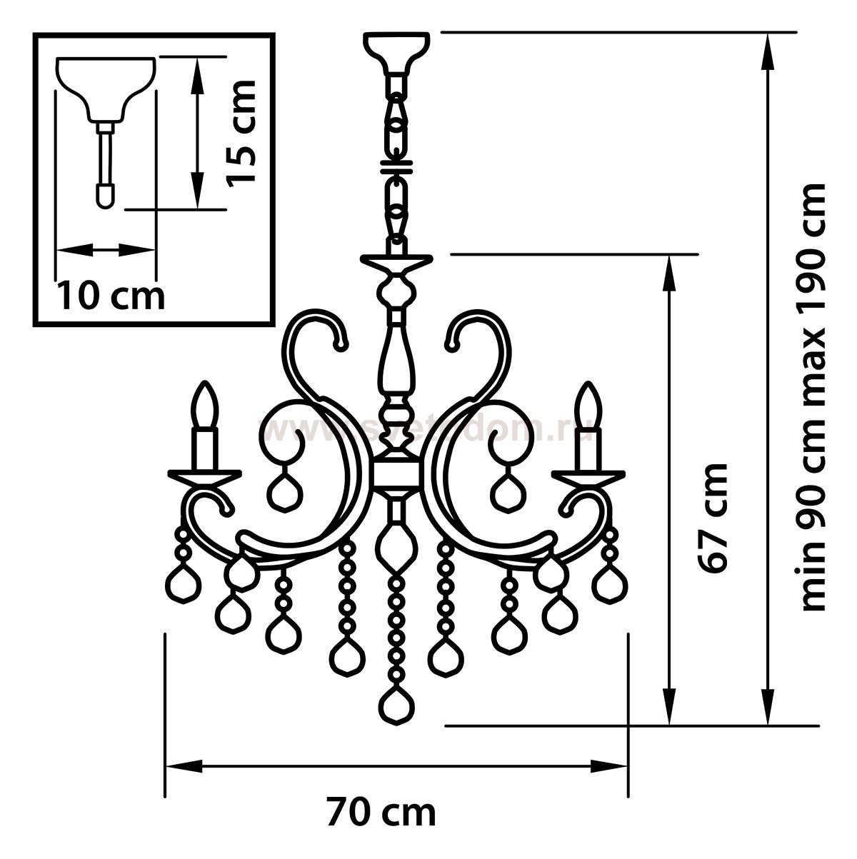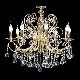 Высота min-max (см): 90-190; Ширина (см): 70; Вес (кг): 14,45; Кол-во ламп: 8xE14; Мощность max (W): 60; Цвет основания/цвет стекла или абажура: Gold/Cristal Clear;