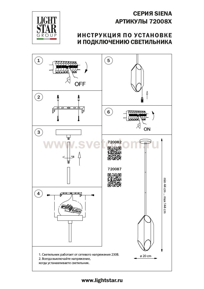 720082 Люстра SIENA 8х40W G9 ЗОЛОТО/БЕЛЫЙ Технические особенности