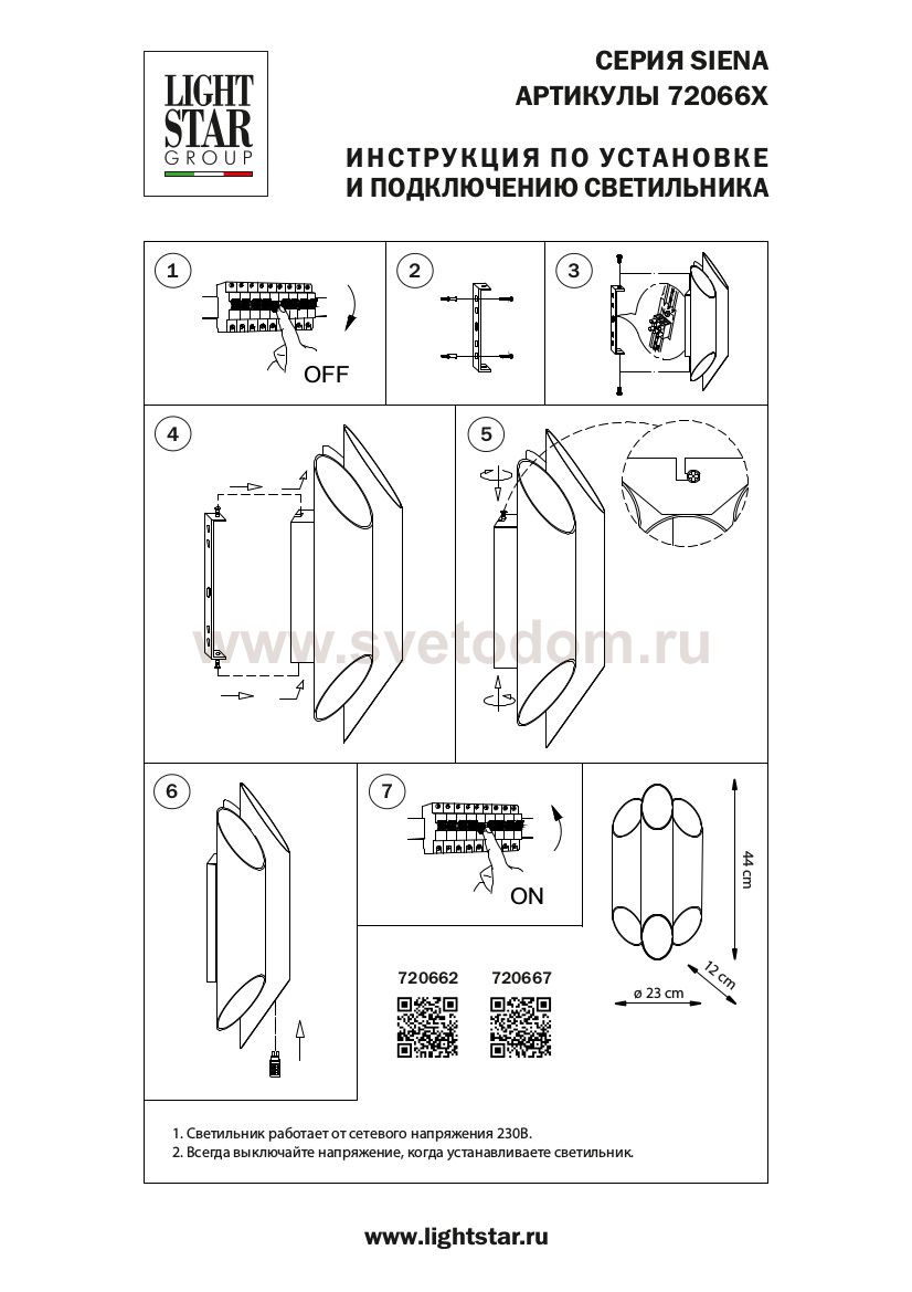 720662 Бра SIENA 6х40W G9 ЗОЛОТО/БЕЛЫЙ Технические особенности