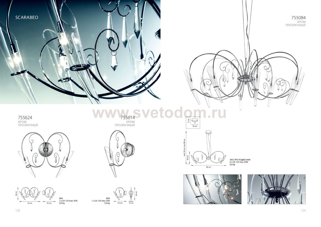 755084 Люстра подв. SCARABEO 8х35W G4 12V ХРОМ хрусталь + стекло Комментарий