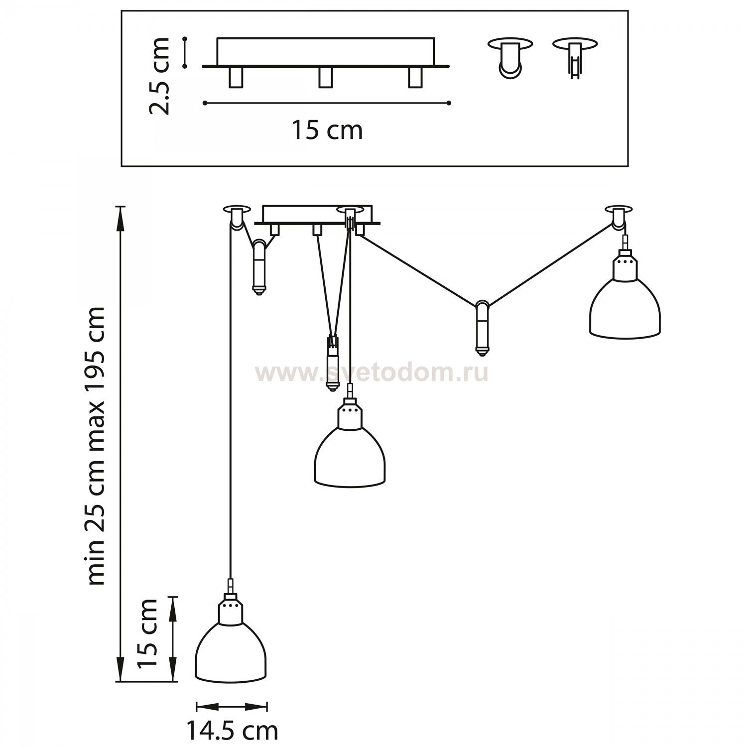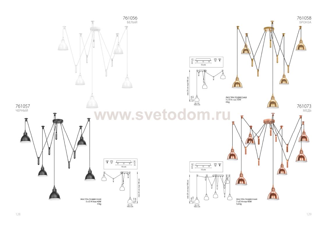 Высота min-max (см): 25-195; Ширина (см): ; Вес (кг): 4; Кол-во ламп: 5xE14; Мощность max (W): 40; Цвет основания/цвет стекла или абажура: Bronze;