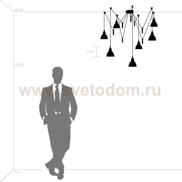 Высота min-max (см): 25-195; Ширина (см): ; Вес (кг): 5,6; Кол-во ламп: 7xE14; Мощность max (W): 40; Цвет основания/цвет стекла или абажура: МЕДЬ;