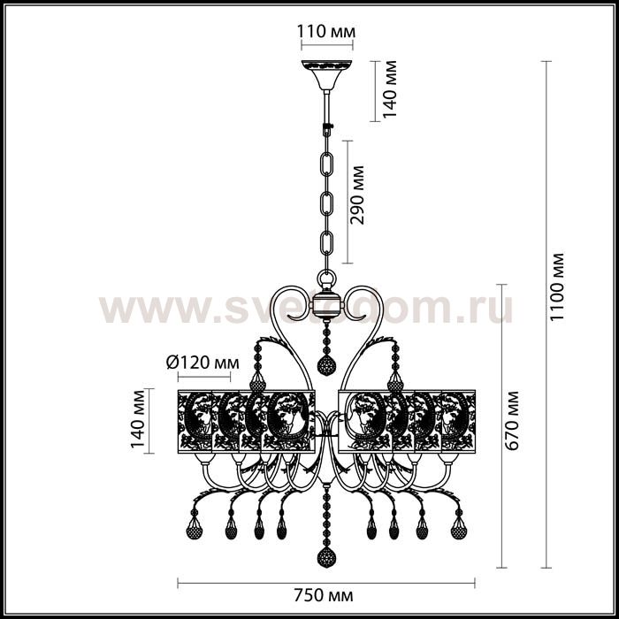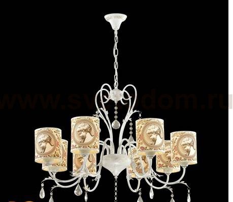 Арматура, декор: металл, металлический декор, хрусталь; абажур: ткань Материал плафона