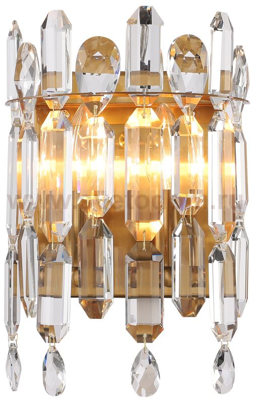 Светильник настенный хрустальный 2158/05/02W серии Legacy исполнена в стиле Модерн". Арматура изготовлена из металла в цвете "бронза", светильник декорирован элементами из хрусталя высококачественной огранки и полировки."