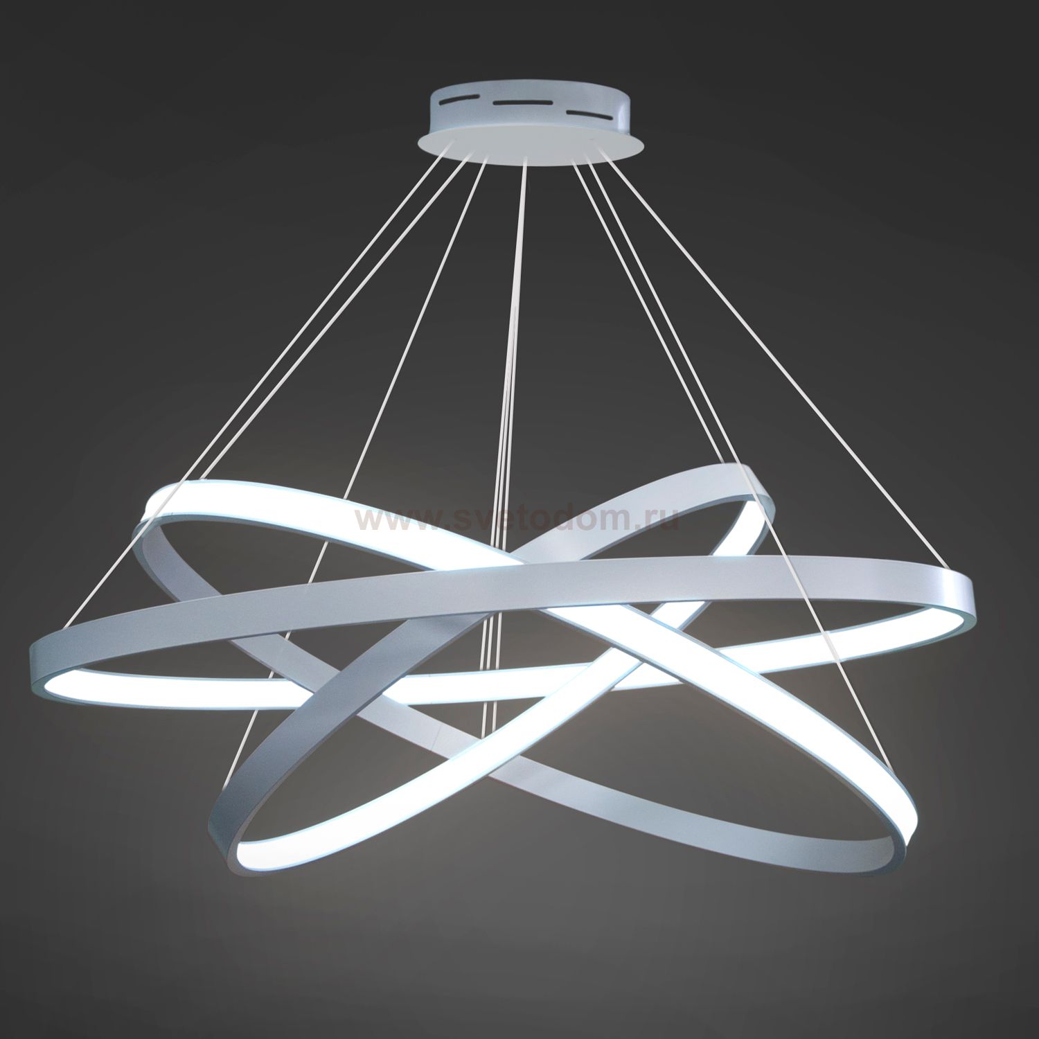 Стильная, современная люстра – светодиодный дизайнерский светильник из трех колец. Подходит для интерьеров в стиле модерн, хайтек, лофт. Испускает тепло-белый яркий свет, похожий на солнышко, без выраженных пятен. Преимущества: 1. Надежный и долговечный: диоды расположены на алюминиевой плате, а не на ленте. 2. Прочный: основание и корпус и металла, а не из пластика. 3. Безопасный: нулевой коэффициент мерцания – благоприятно для зрения.