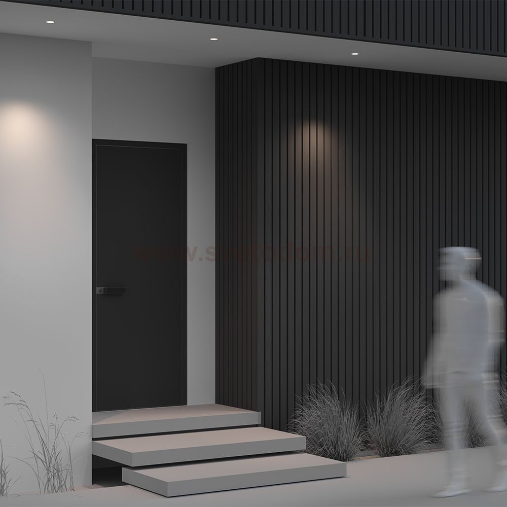 Материал арматуры - алюминий, цвет - черный и белый. Встраиваемый светильник, LED-источник света, цветовая температура 3000К, два размера, два цвета и две мощности (5Вт и 10Вт), высокая степень защиты от пыли и влаги IP65, высокий индекс цветопередачи >90. Скрытый монтаж.