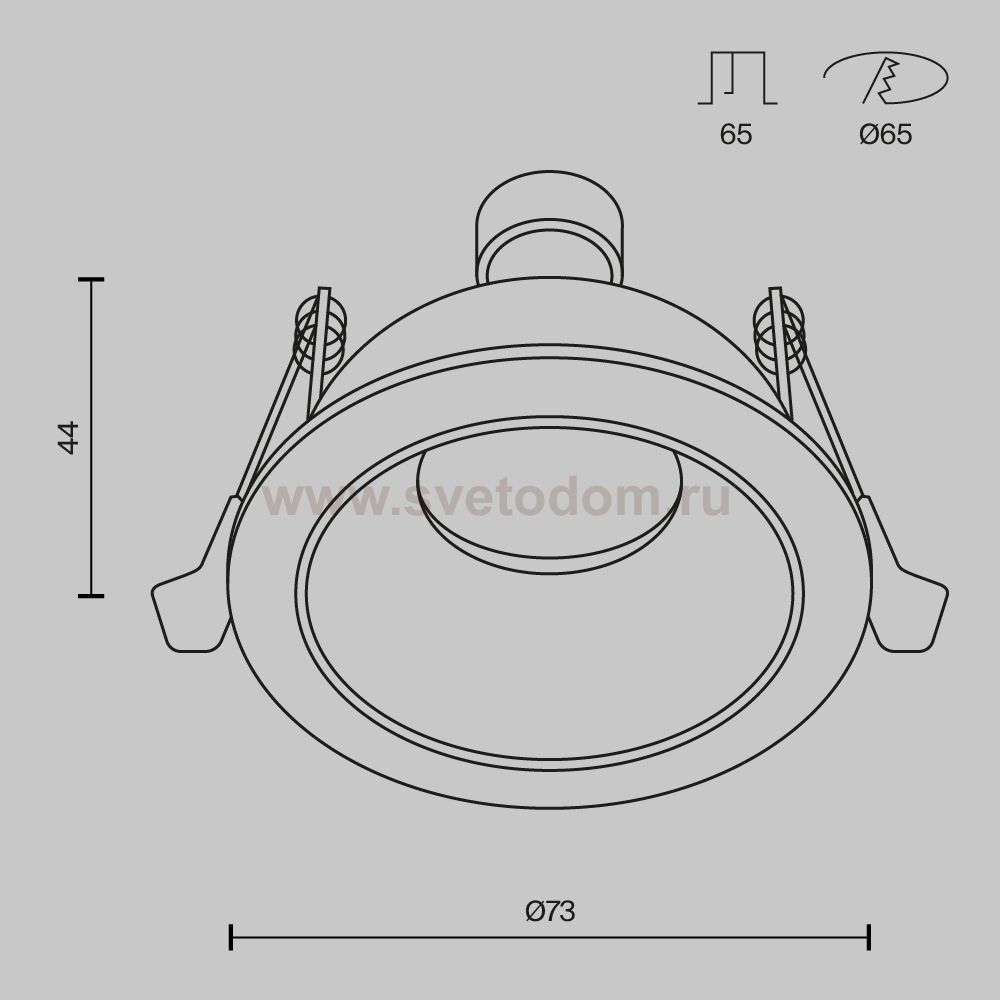 Данный размер указывает какое отверстие необходимо сделать для правильного монтажа. Зачастую светильники выбирают после ремонта и сделанных монтажных отверстий, тогда подбор осуществляется строго в размер +/- 2-5мм.