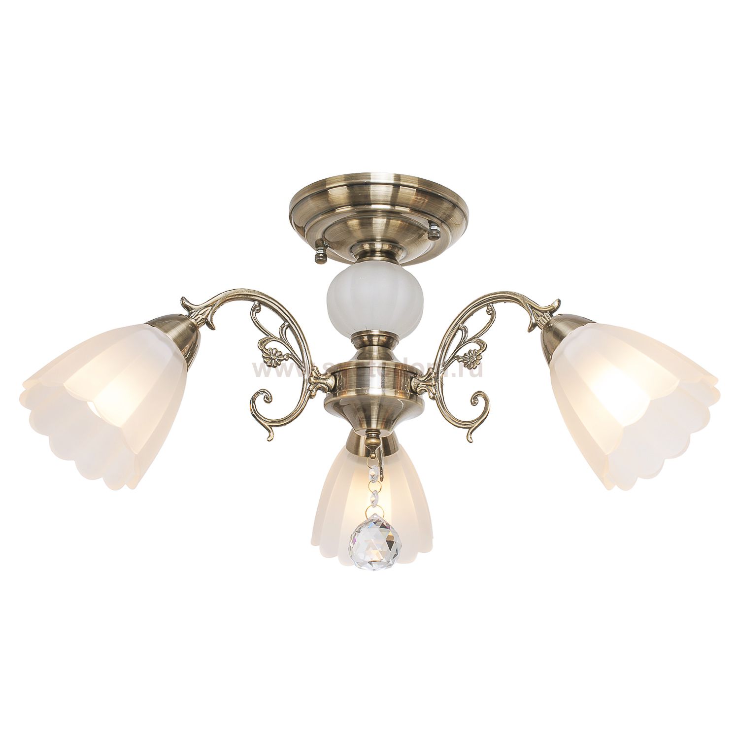 Люстра классическая 4671/3AB WT от бренда ЭкономСвет. Каркас выполнен из материалов металл и стекло; цвета: античная бронза и белый. Плафоны (светорассеиватели) выполнены из материала стекло, цвет белый. Цоколь E27 рассчитан на лампы максимальной мощности до 40 Вт, а максимальная площадь освещения составит до 7 м?.