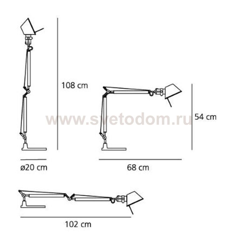 Регулируемая арматура для настольной лампы и настенного светильника серии Tolomeo mini из алюминия. Возможные цвета: серый алюминий, белый, черный. Может быть со встроенным датчиком движения. |
