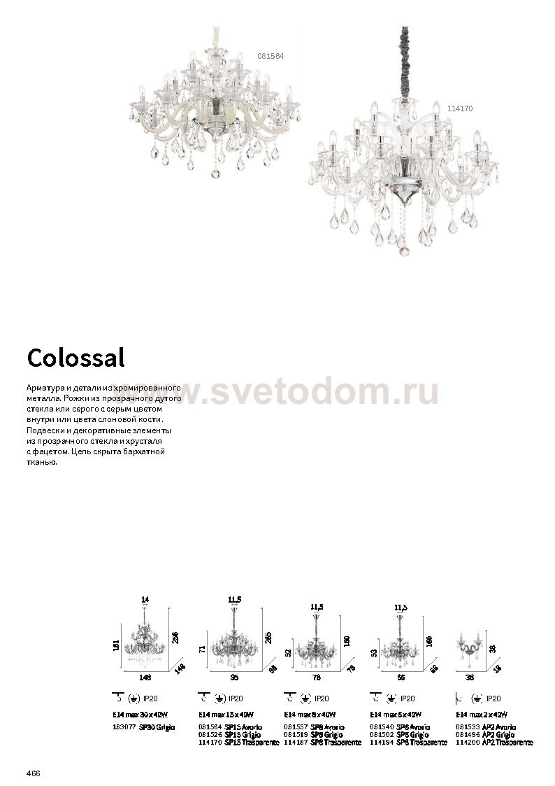 466 Отзывы Ideal Lux COLOSSAL SP15 TRASPARENTEПока нет отзывов об этом товаре, напишите и он обязательно появится после модерации! Оставить свой отзывПохожие товары Другие товары магазина Фото