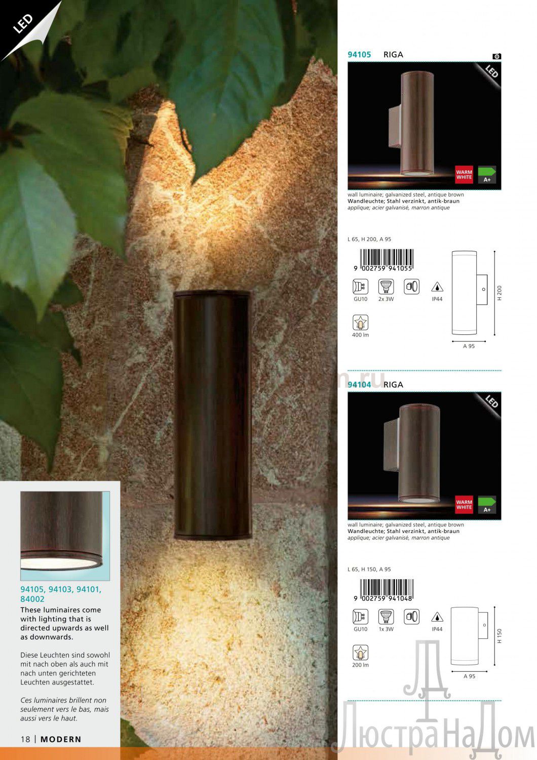 Купить уличный светильник Eglo RIGA 94105 уличный, представленный в нашем каталоге, можно с помощью онлайн-формы для заказа. Чтобы задать имеющиеся вопросы, звоните нам по указанным телефонам.