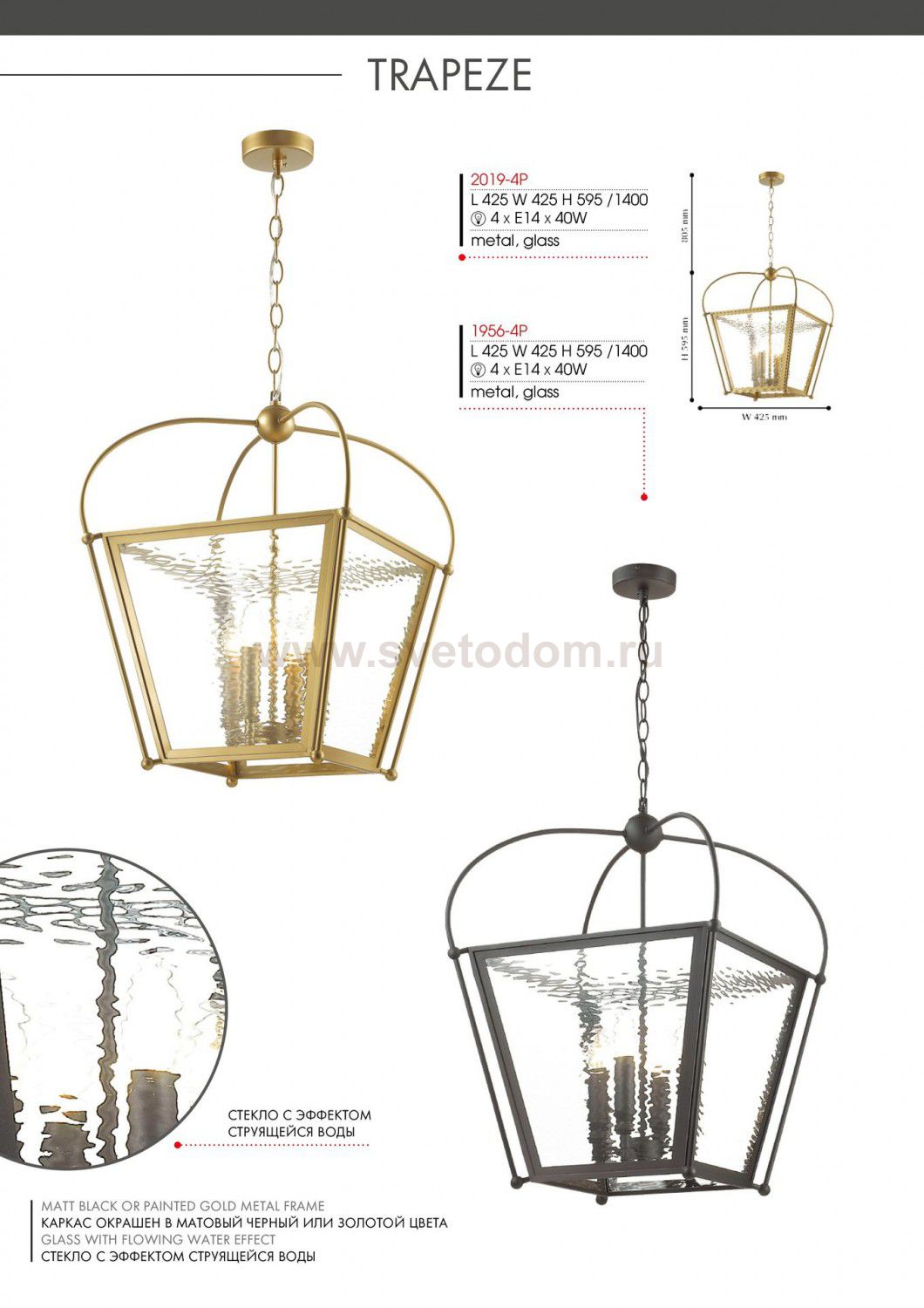 Люстра Favourite 1956-4P Trapeze сделает Ваш интерьер современным, стильным и запоминающимся! Наиболее функционально и эстетически привлекательно модель будет смотреться в гостиной, зале, холле или другой комнате. А в комплекте с настенными бра и торшером из этой же коллекции, сделает интерьер по-дизайнерски профессиональным и законченным. |