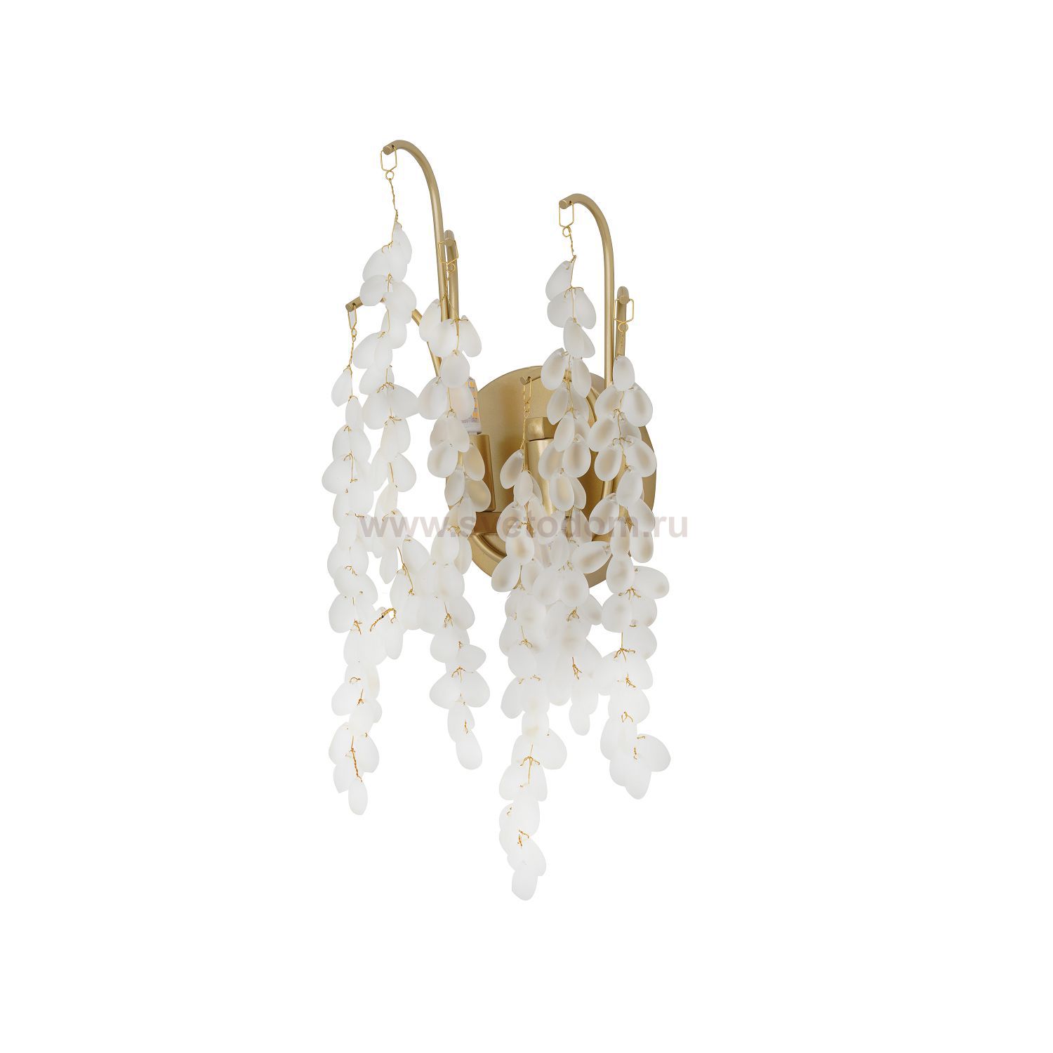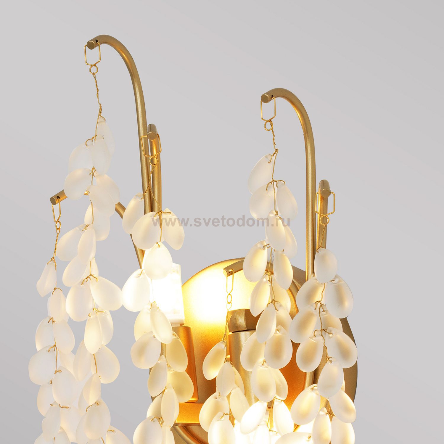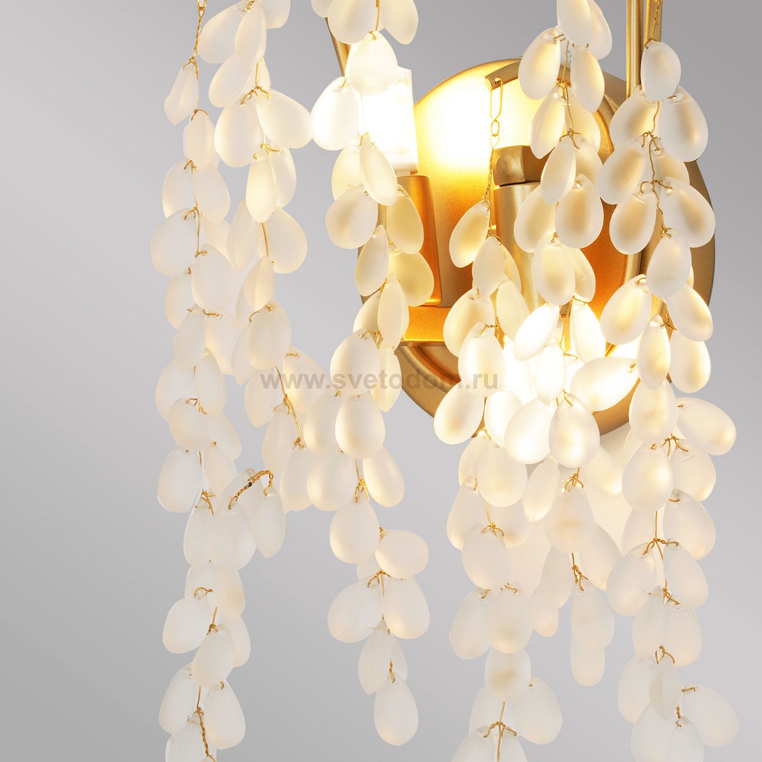 Каркас цвета золота, декор из стёкол белого матового цвета в виде виноградной грозди. Лампы можно менять Декор