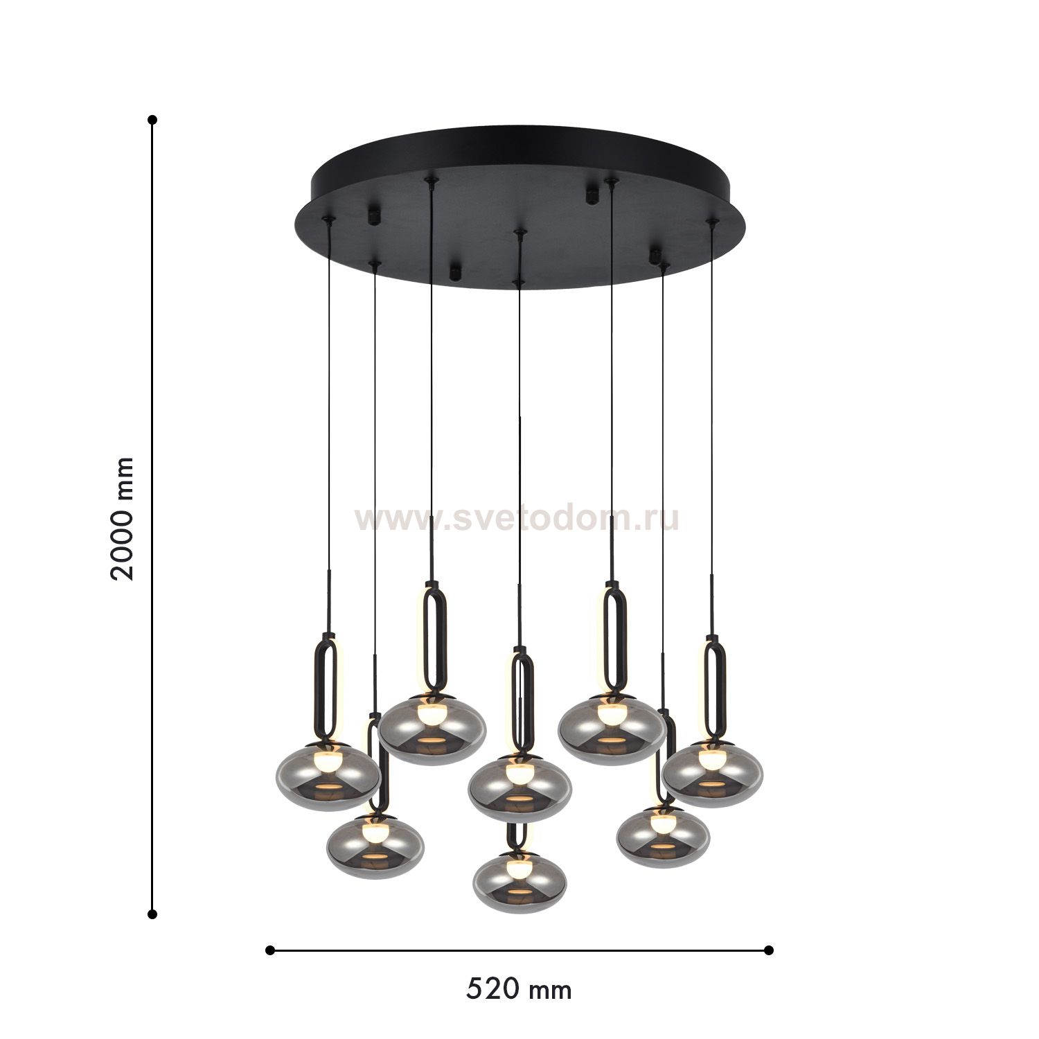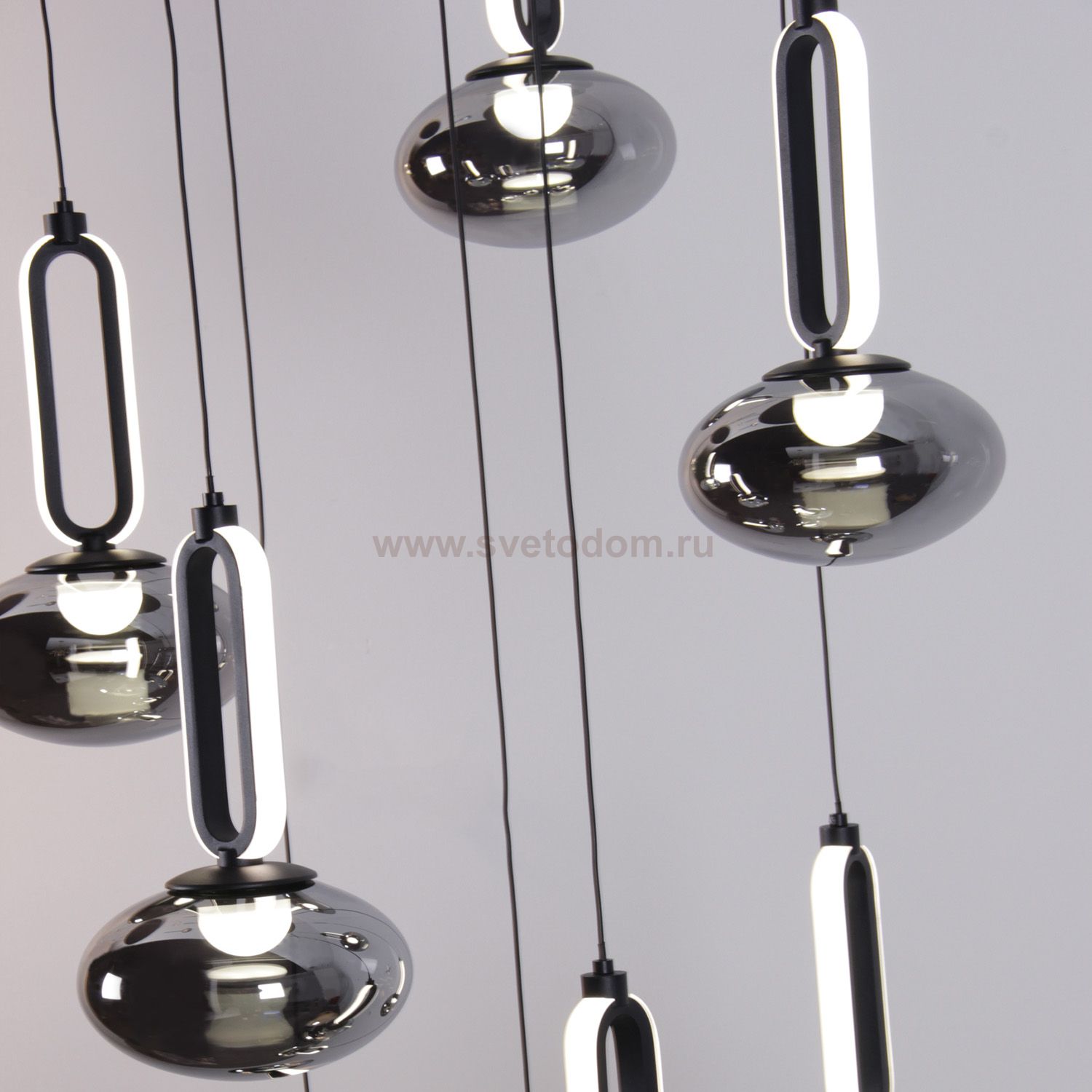 Потолочная люстра с восьмью выдувными стеклянными плафонами, внутри которых расположены LED-модули с закругленными акриловыми рассеивателями и декорат Серия