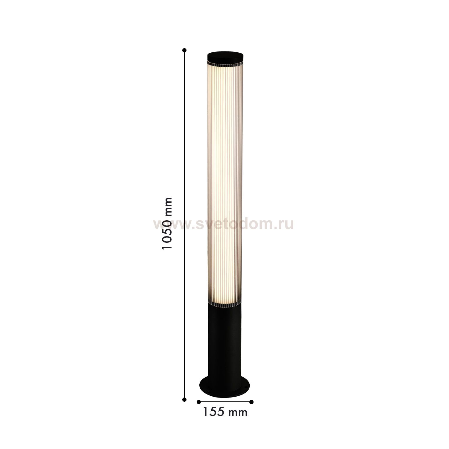Уличный столб в черном цвете, удлиненный плафон состоит из двух частей - внешний плафон из прозрачного рифленого акрила, внутренний плафон белого мато Серия